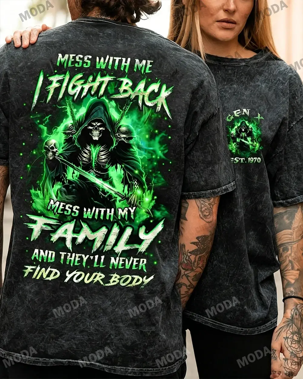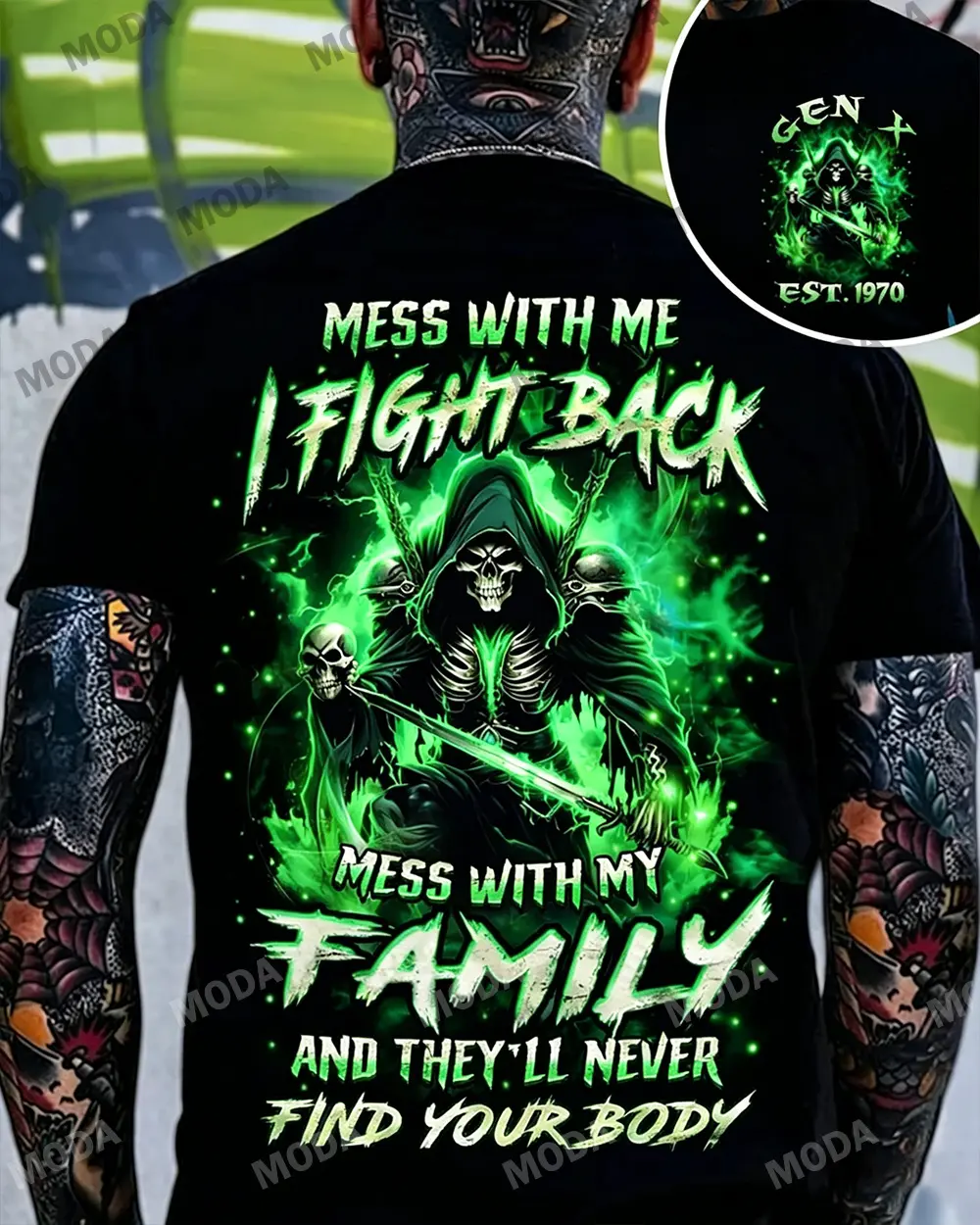 Chaosmoda Generation X Mess With Me I Fight Back Mess With My Family Custom Year Skull T-shirt