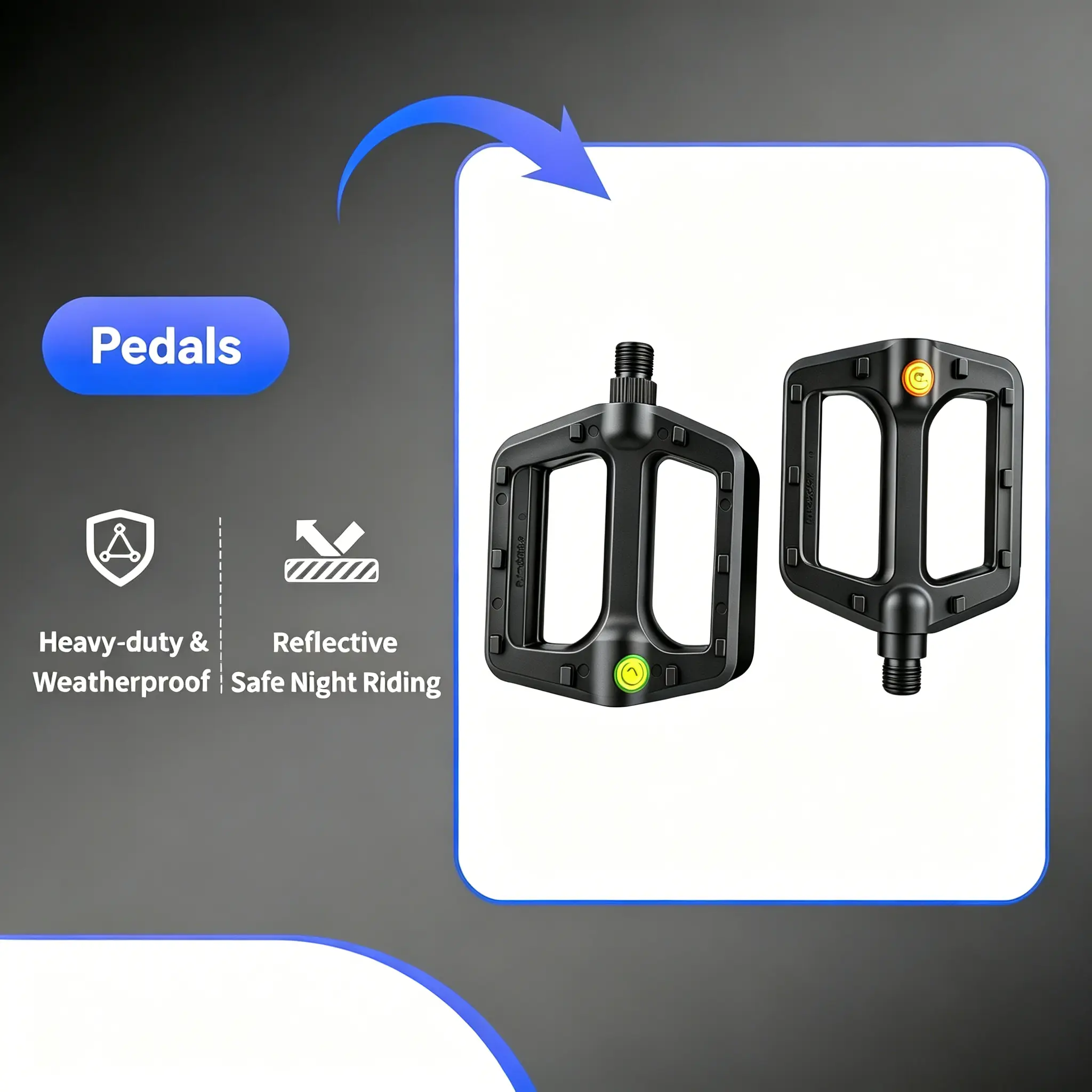 Precision-matched pedals for E500, clearly marked L/R to avoid installation errors. Sturdy, non-slip, and durable for daily riding.