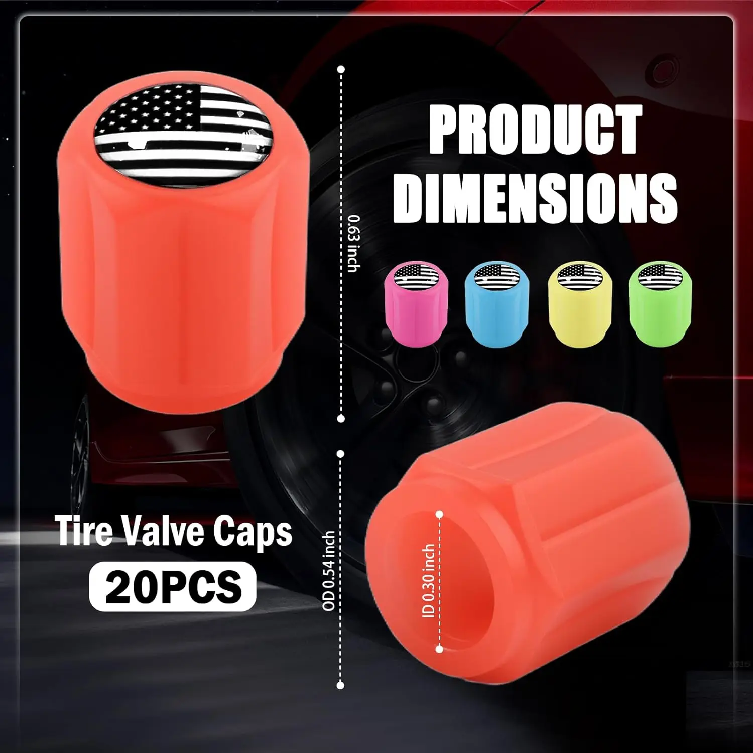·2 Styles: Includes 20 car tire valve caps in 5 vibrant colors—red, pink, blue, yellow, and green—plus two special emblem options: American flag and cool car logos. Mix and match colors and designs freely to effortlessly create a unique tire style