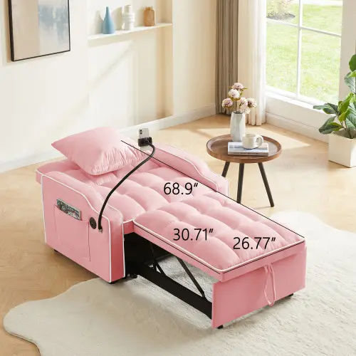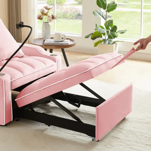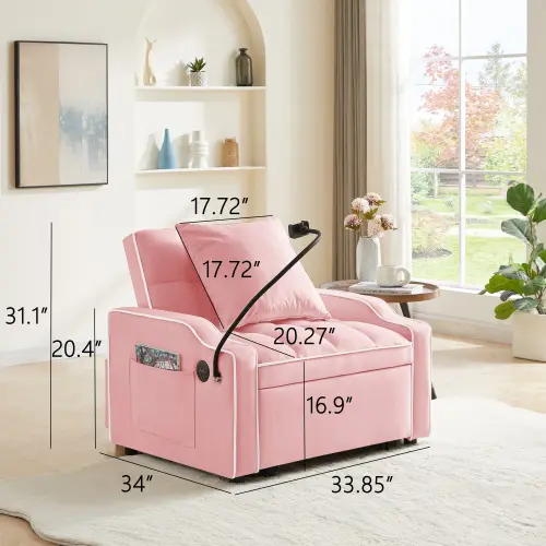 Pull Out Chair Bed:This sleeper chairs can easily convert into a Chaise Lounges or a single bed.This convertible design provides maximum living flexibility in the minimum amount of space.You will love the lounging capabilities of this versatile and space-saving pullout couch bed.Appropriate for apartment, dorms, apartments, studios, office, residential theater room.