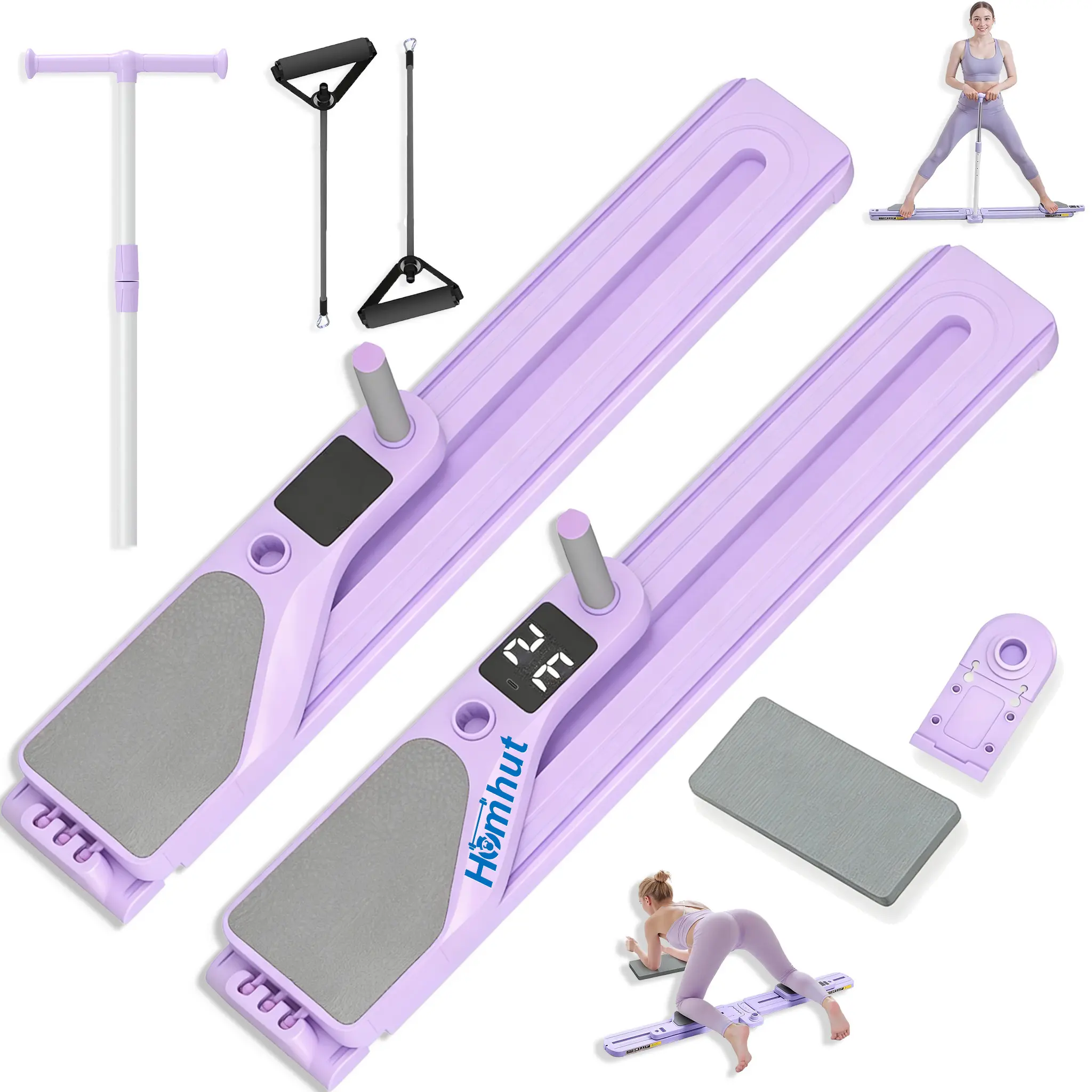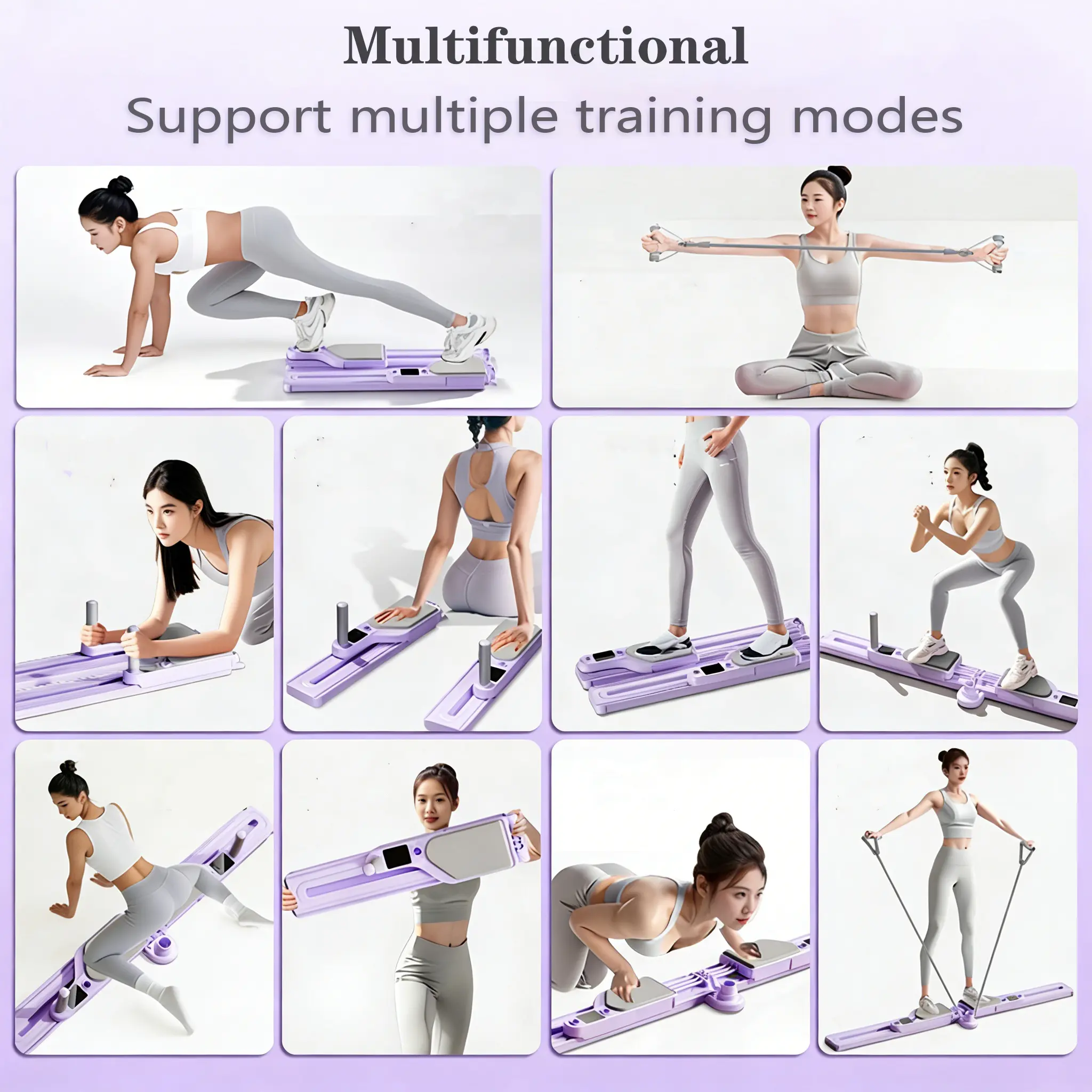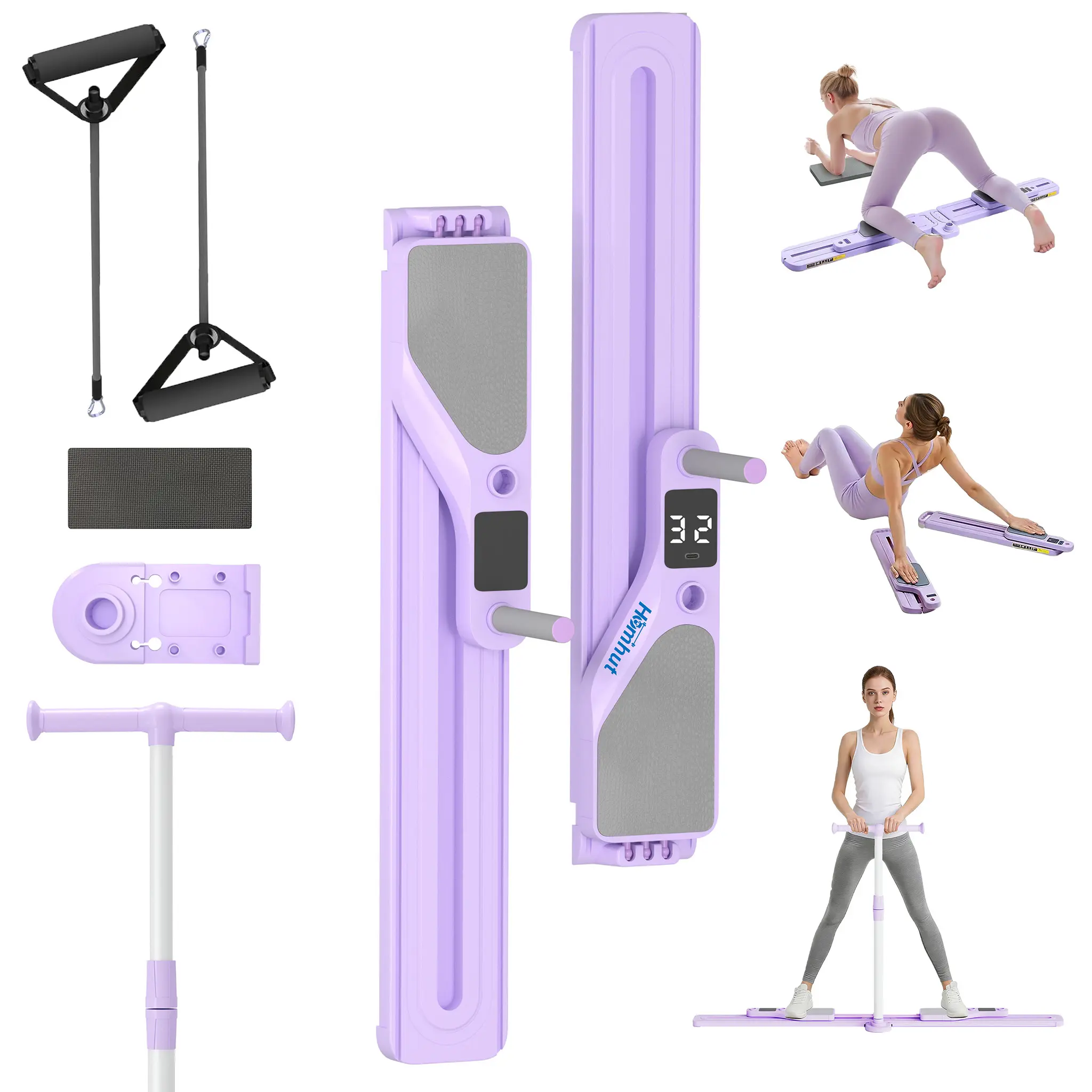 Purple Multifunctional Pilates Board Pilates Reformer Machine with Resistance Bands, Timer & Kcal Reps Display, Full Body Home Workout Equipment Fitness Exercise Kit for Women