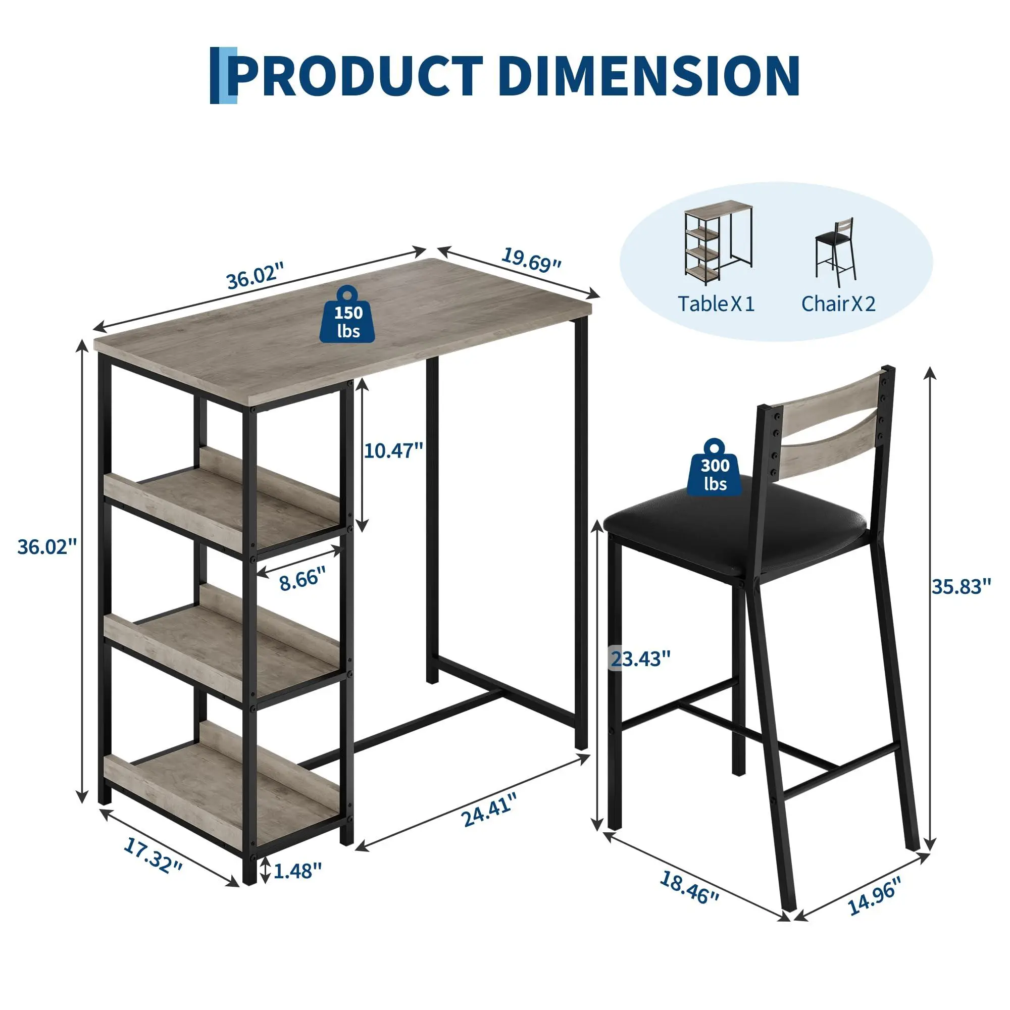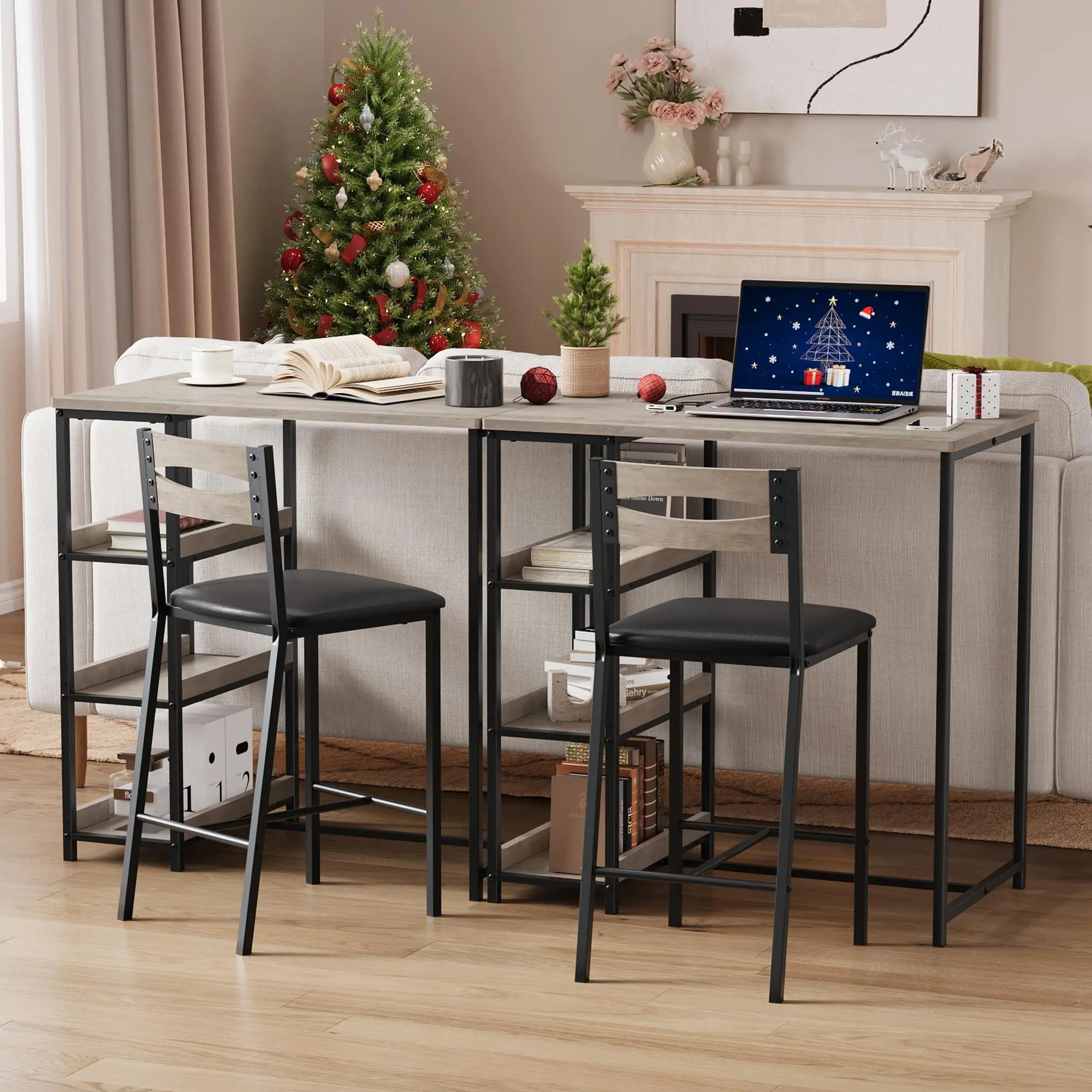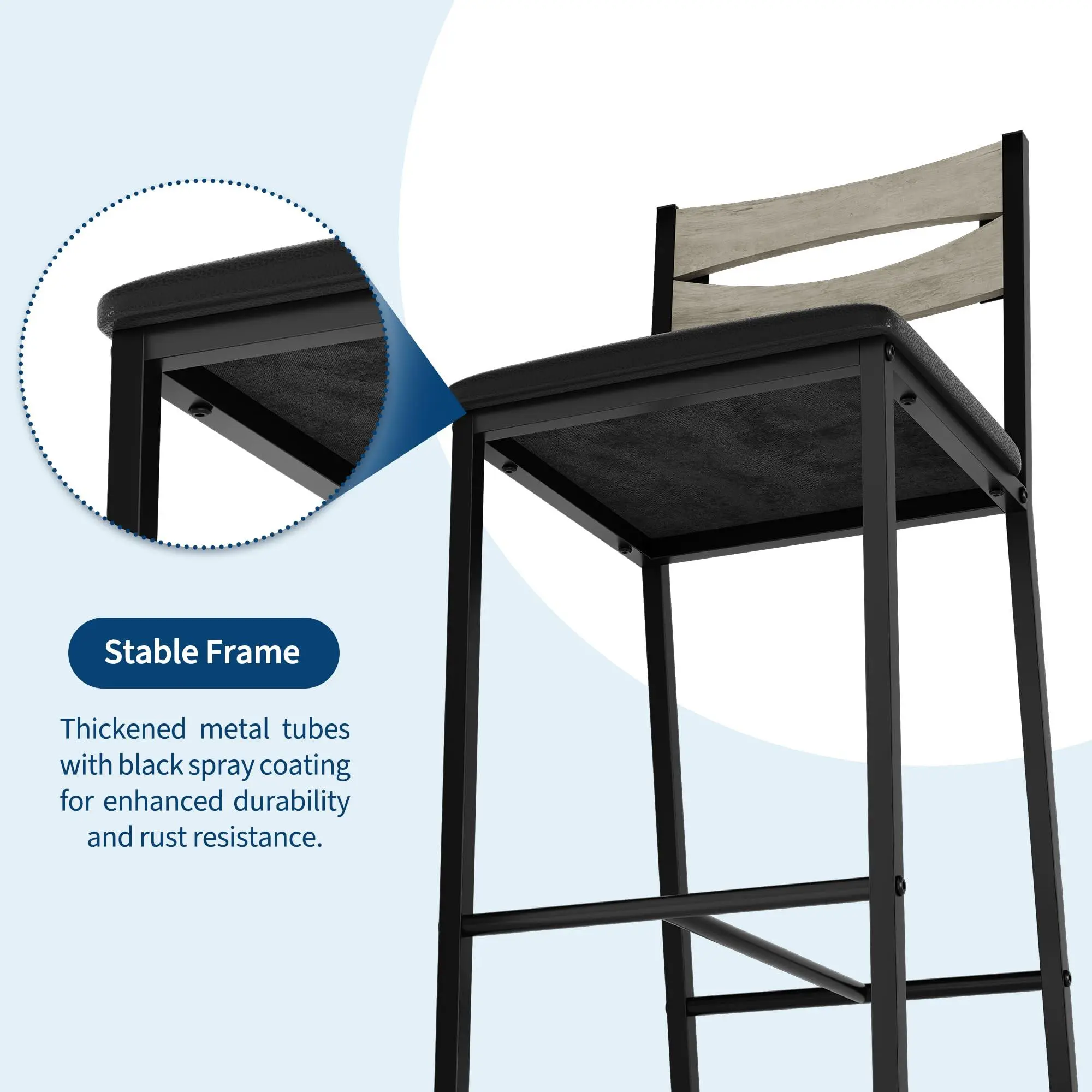 Ergonomic Comfort & Heavy-Duty Build: The bar stools are upholstered with thick padding for lasting comfort. Constructed from premium MDF and a robust solid steel frame, the set ensures exceptional stability. Each stool supports up to 300 lbs