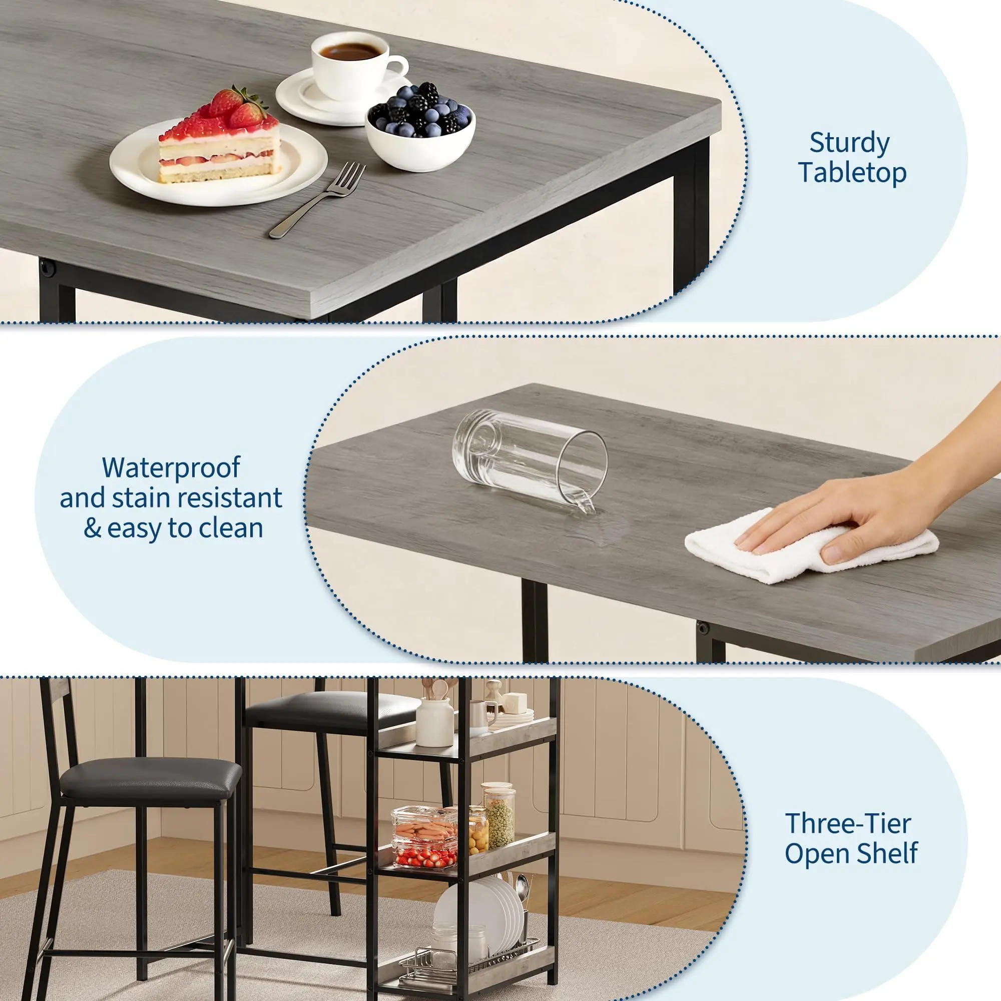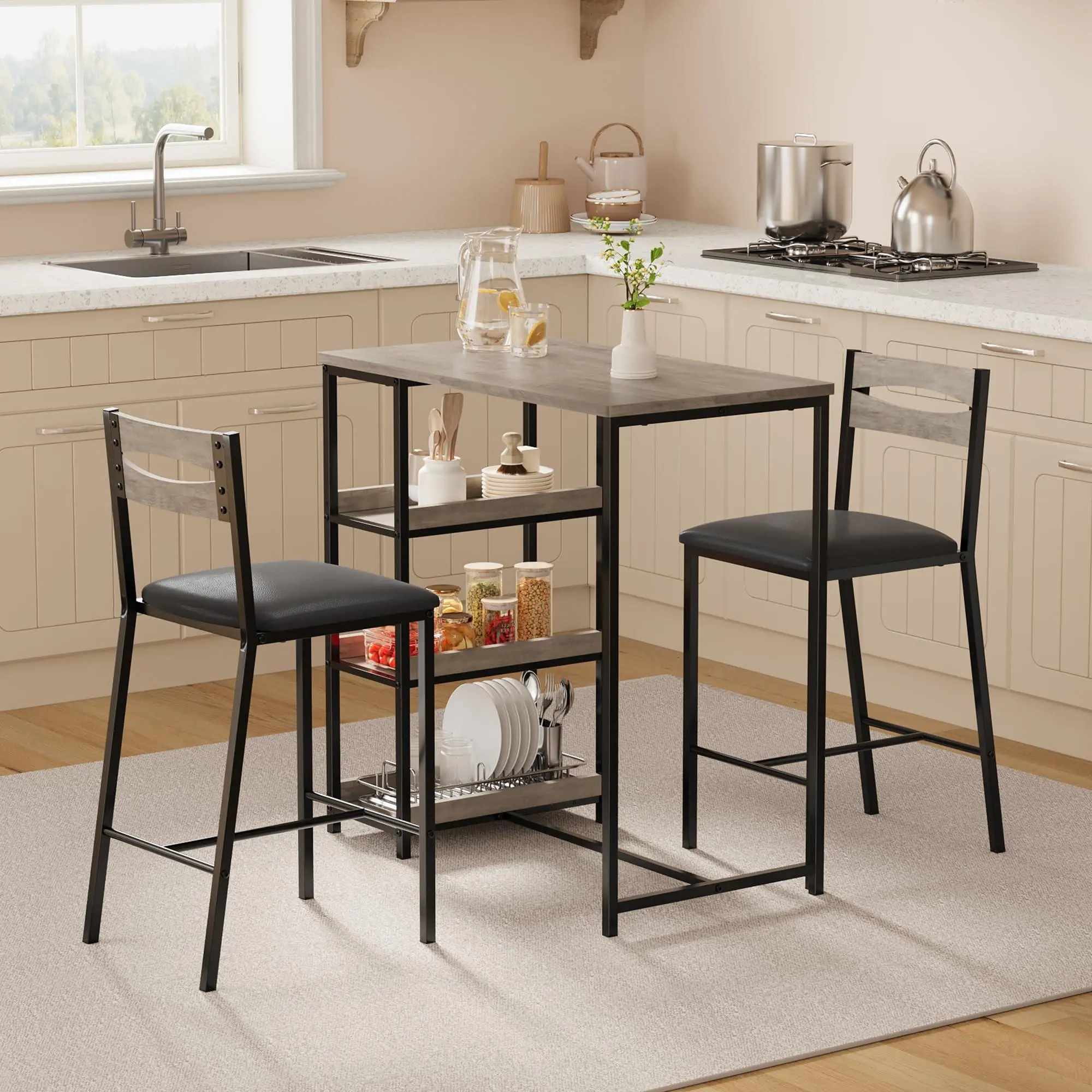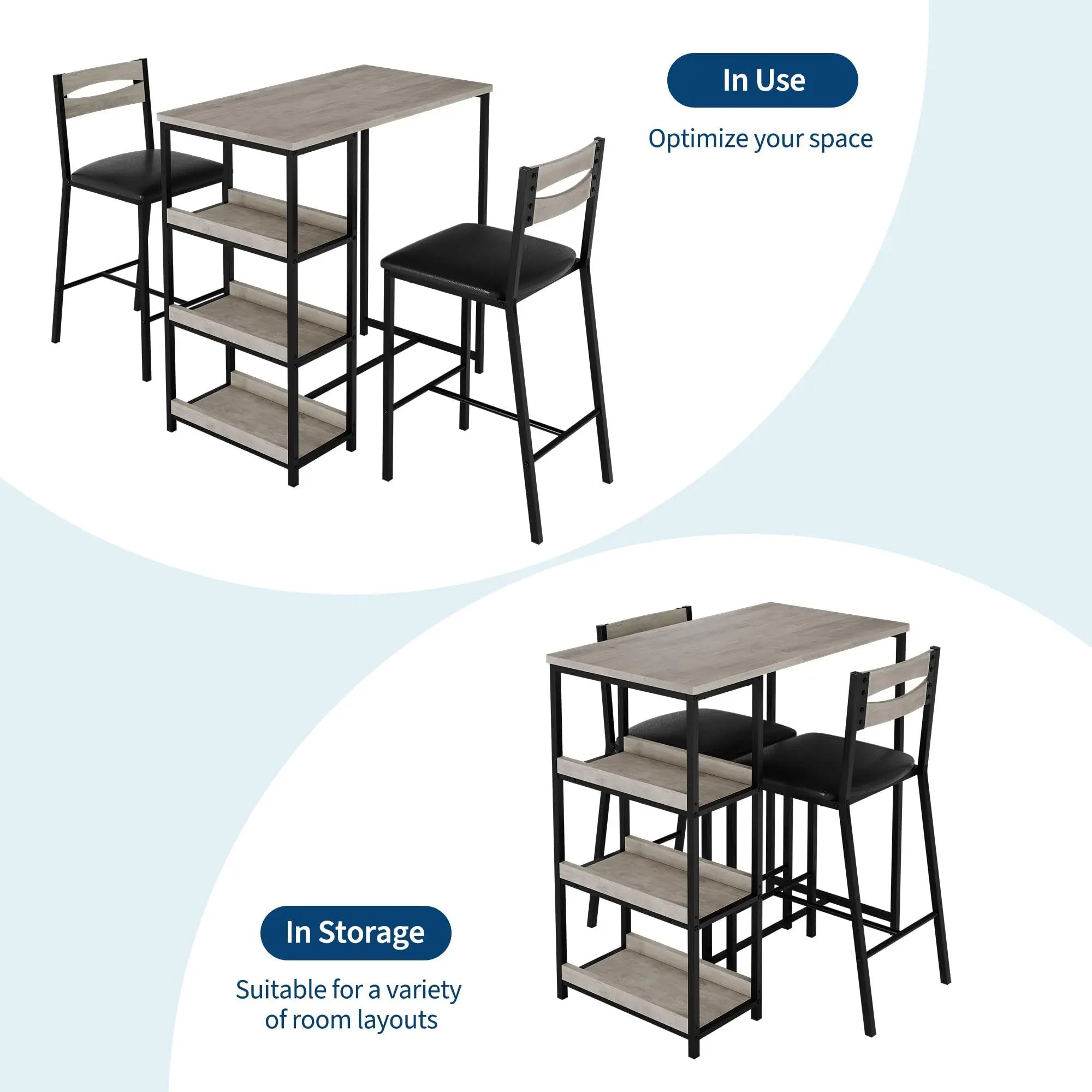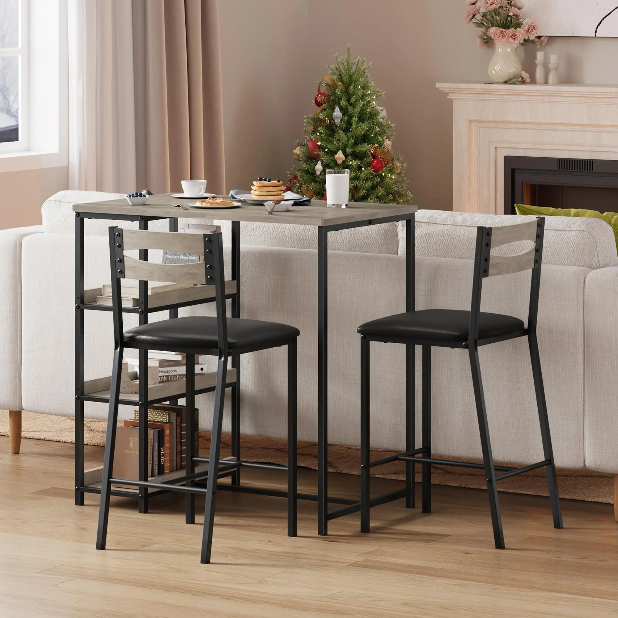 Perfect for Small Spaces & Easy Storage: This compact 36-inch counter-height table fits perfectly in kitchens, breakfast nooks, studios, and apartments. The two padded bar stools conveniently tuck under the table when not in use, maximizing your floor space