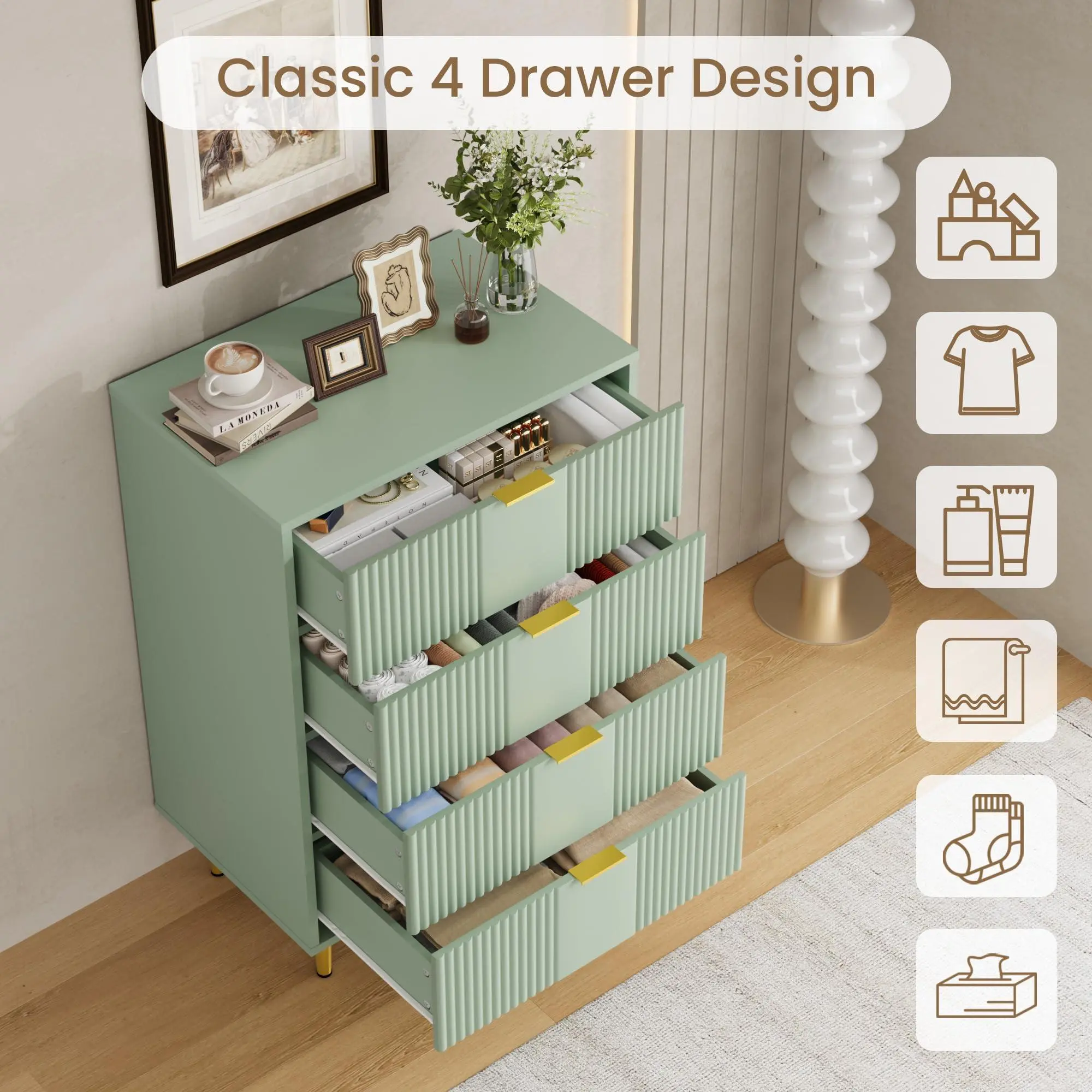 【Large Storage Capacity】The dresser for closet features 4 deep drawers that provide plenty of room for organizing clothing, bedding, cosmetics, or jewelry, helping you maintain a neat and tidy space. The wide wooden tabletop can serve as a dresser TV stand or display your decorations such as photo frames, plants or mirrors. Perfect for bedroom, living room, hallway, entryway