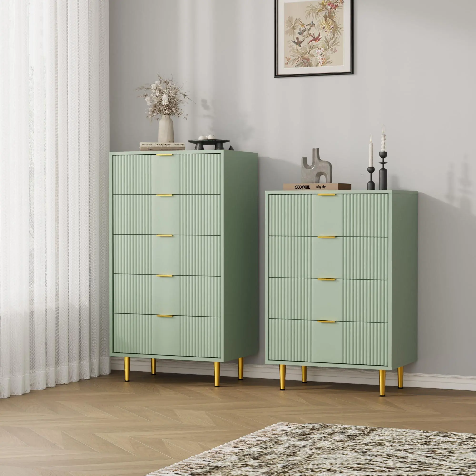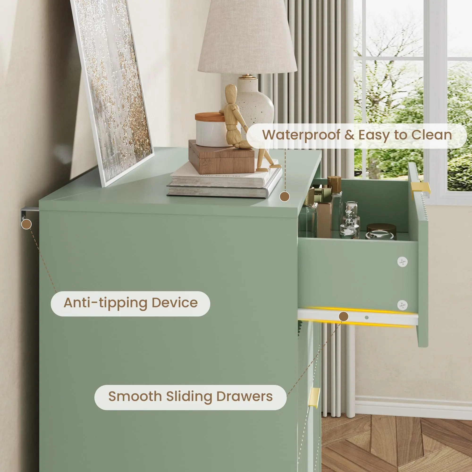 【Solid Material & Sturdy Construction】The dressers & chests of drawers are constructed from optimal MDF, P2 engineered wood and coated metal handle which not only has exquisite texture, but also ensure long-term use and scratch resistant. Each drawer holds up to 35 lbs/15 lbs and the thickened tabletop can support up to 150 lbs. For easy cleaning, just wipe with damp cloth and get it air-dried