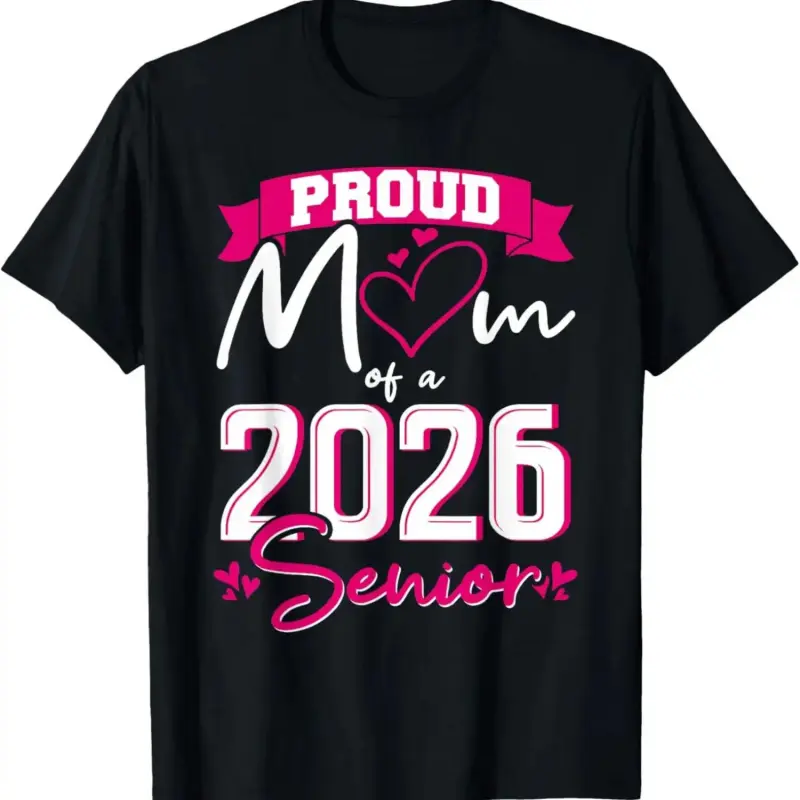 100% Cotton Proud Mom Class of 2026 Senior Graduation Funny Senior Mom T-Shirt