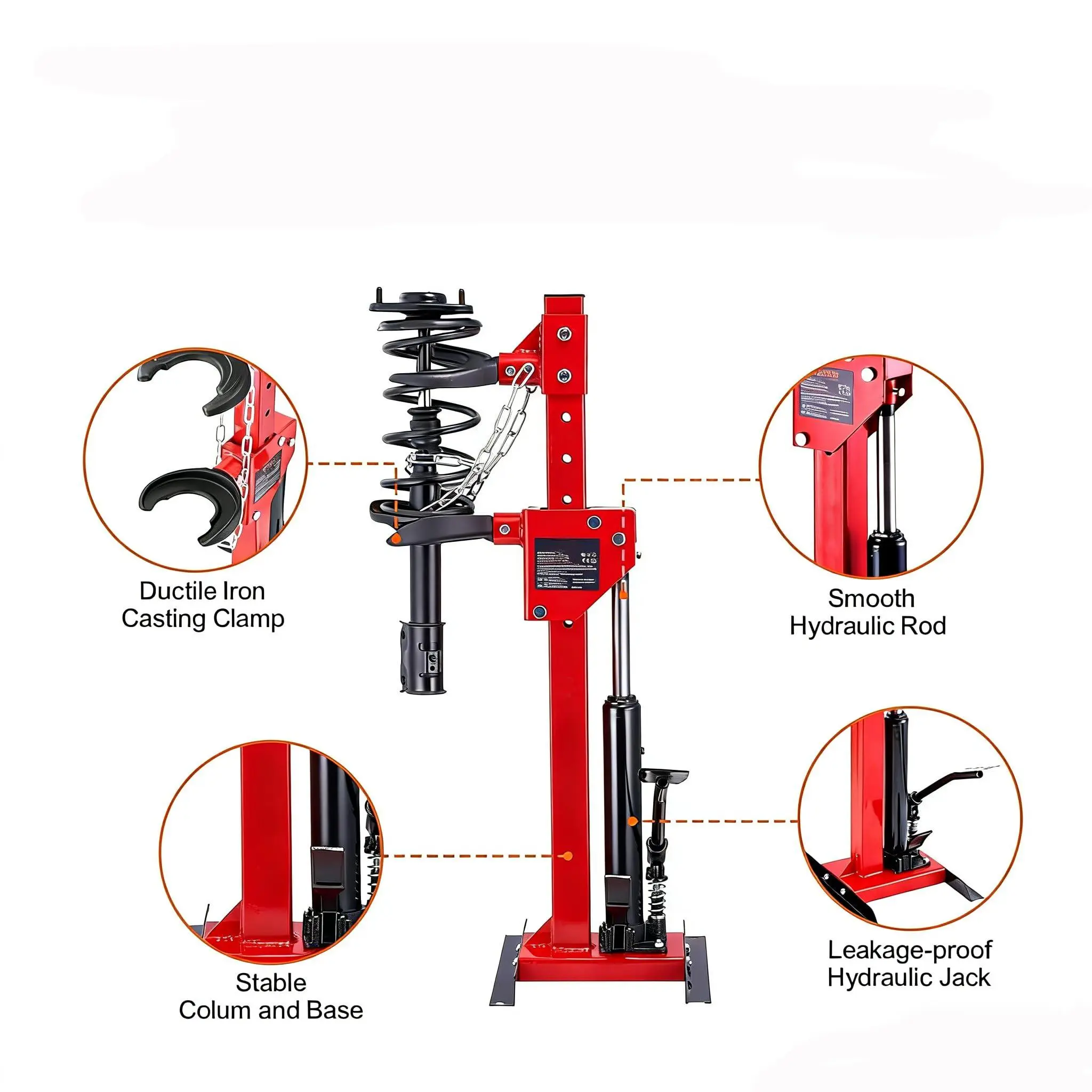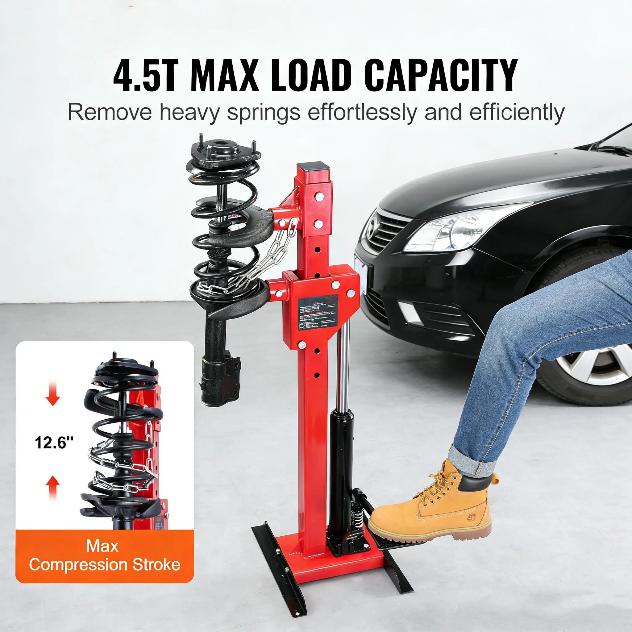 Professional Hydraulic Foot Pump:Our shock spring compressor features a powerful hydraulic drive system operated by foot, making it 5X faster and significantly more labor-saving than traditional manual tools. Trusted by professional mechanics for its consistent, reliable performance during long repair jobs.