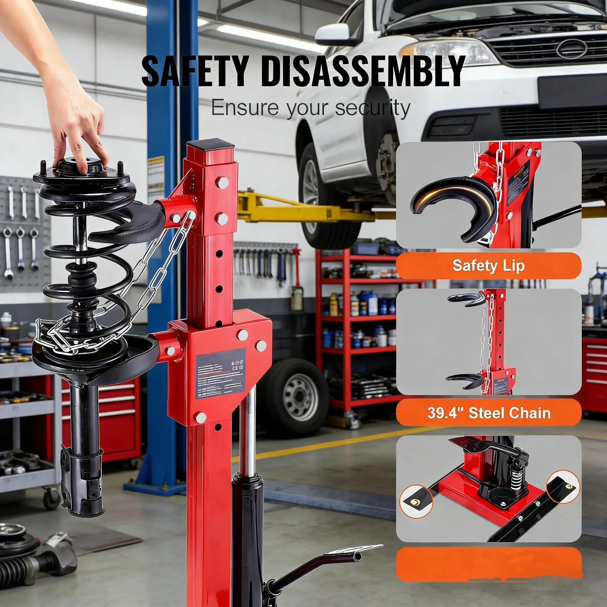Ultra-Safe & Stable Locking Design:Engineered with heavy-duty steel and precision-machined clamping clamps to prevent spring pop-off. The Garvee stable base and secure locking structure ensure maximum safety for both professional auto shops and home DIY enthusiasts.