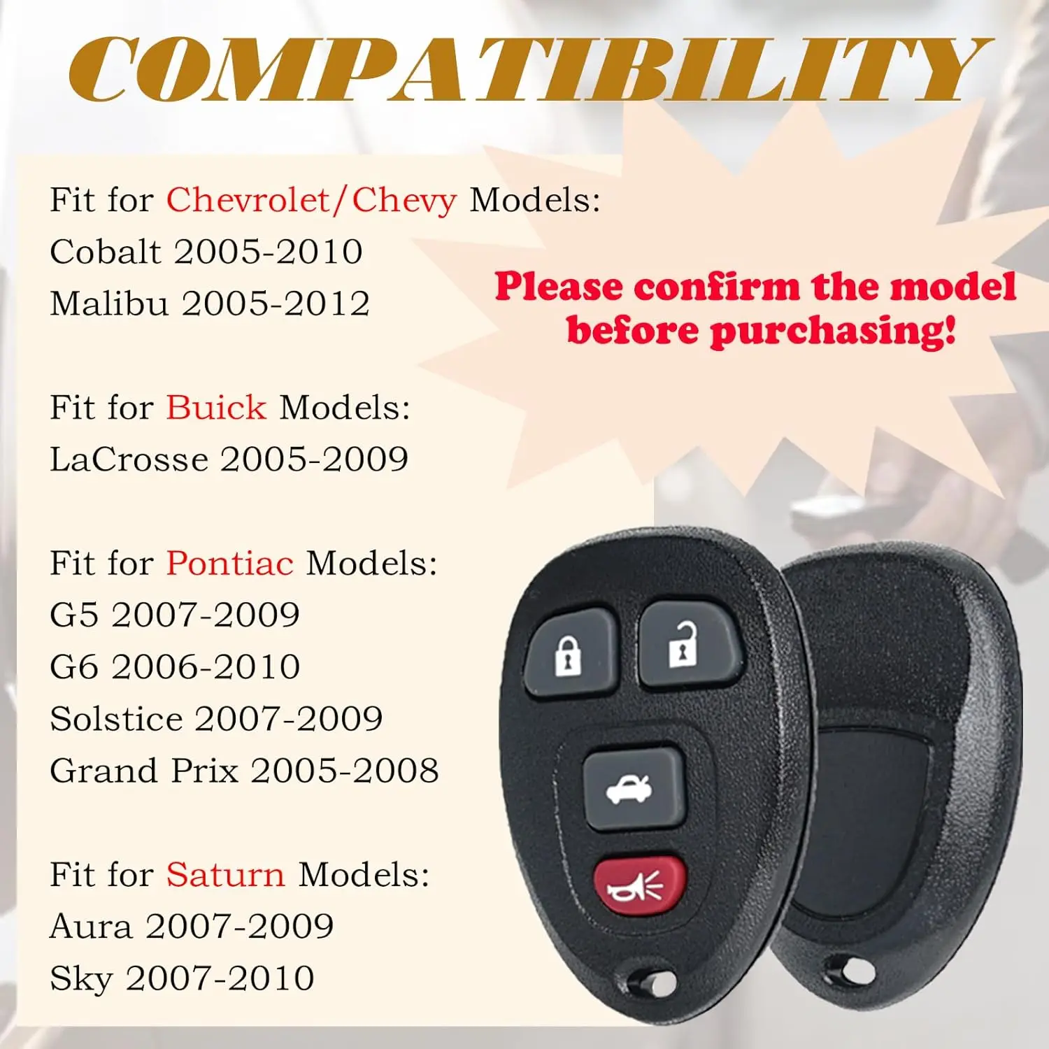 Keyless Entry Remote Control Key Fob Replacement Fits for Chevy Malibu Cobalt...