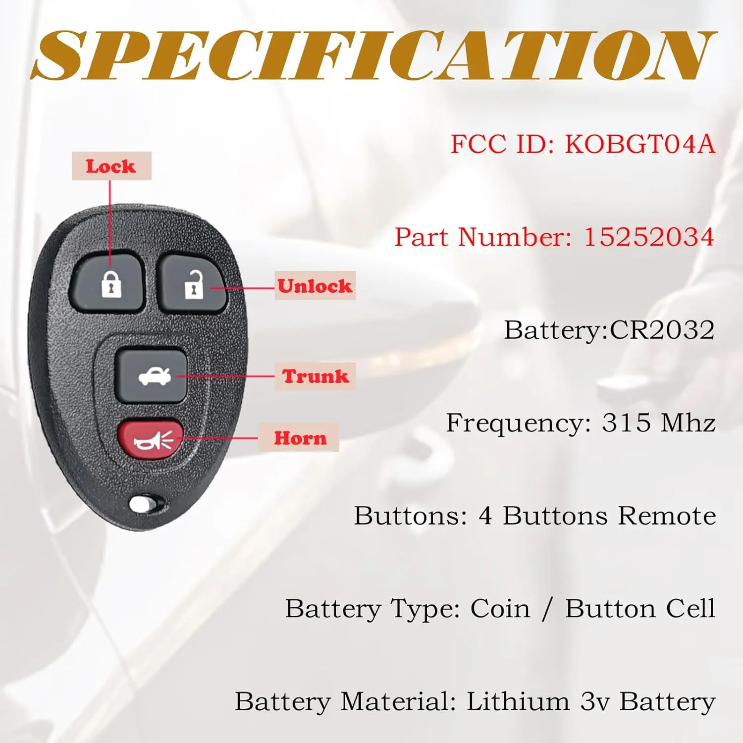 Remote Key Fob Replacement Fits for Chevy Malibu 2004 2005 2006 2007 2008 200...