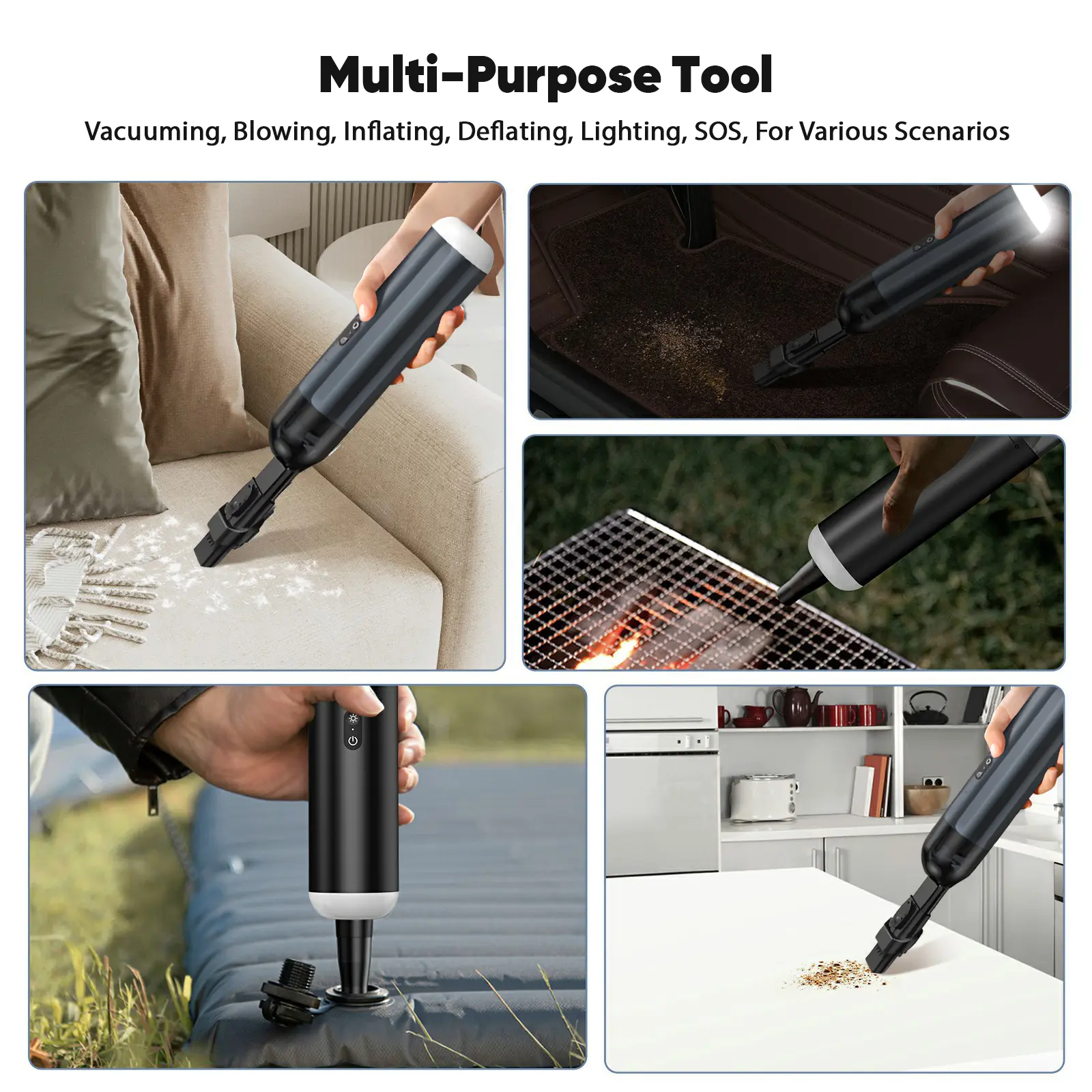 More than a vacuum! It has a night flashlight and emergency SOS mode—ideal for unexpected emergencies.