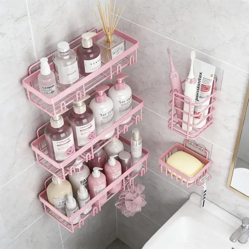 2026 Pink Bathroom Storage Set | No Drilling Shower Caddy & Kitchen Shelving | Rust-Proof Waterproof Large Capacity | Minimalist Bedroom & Living Room Decor | Must-Have Home Essentials for 2026#Mother's Day