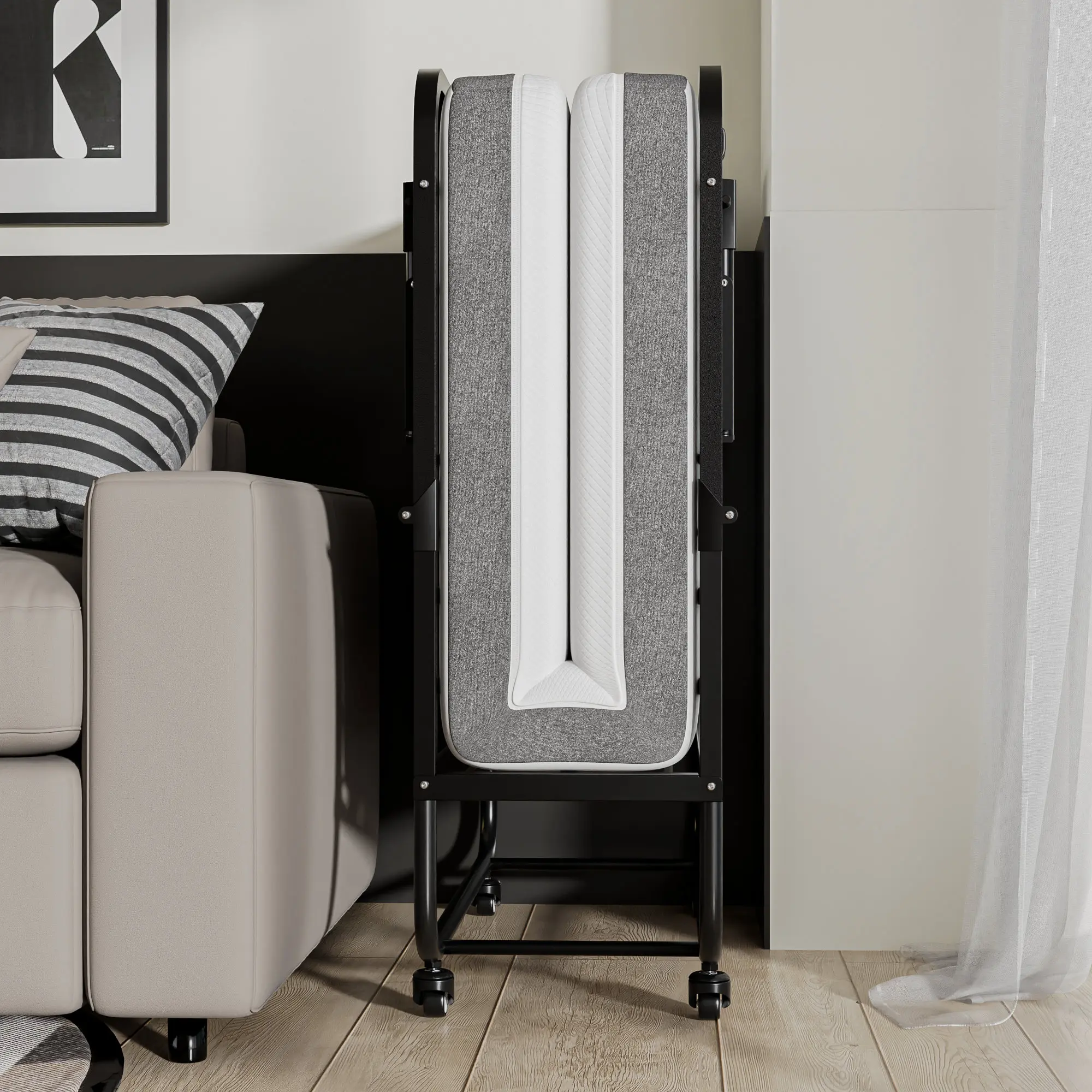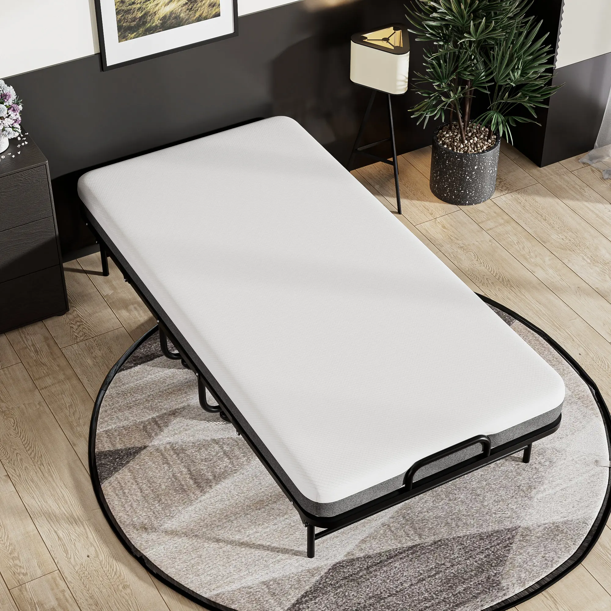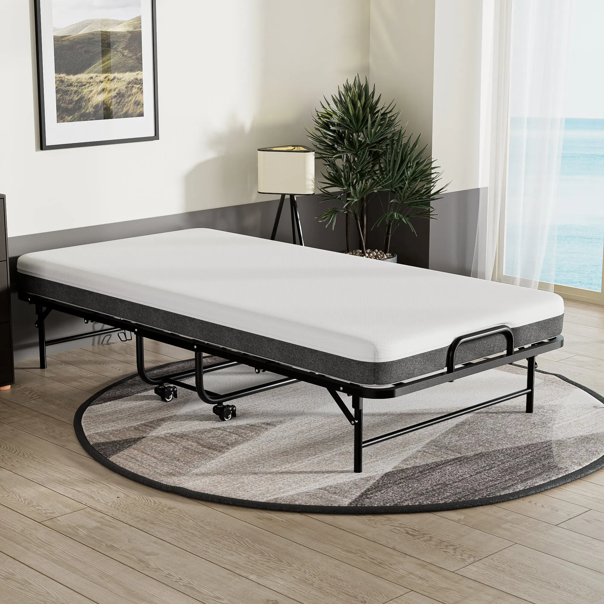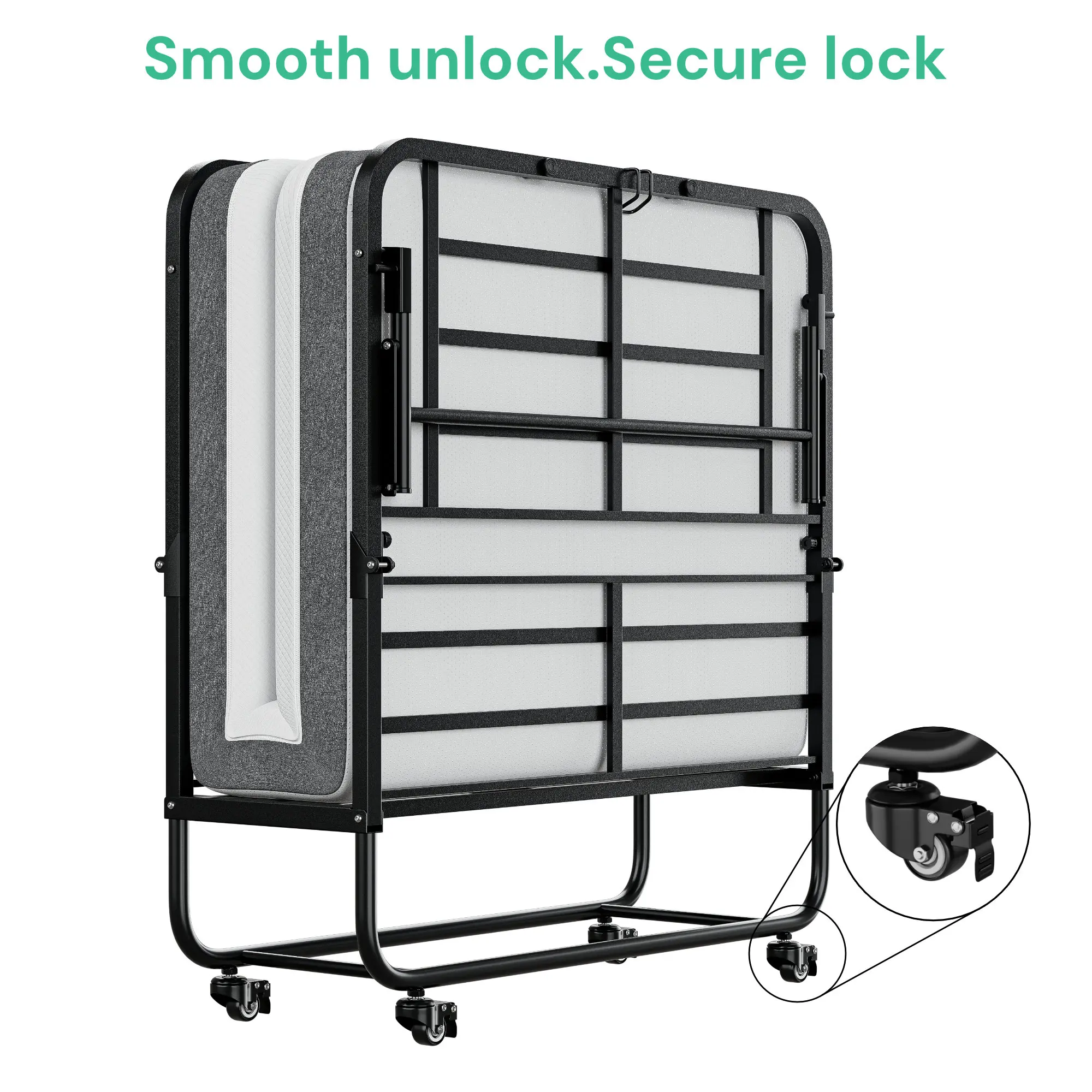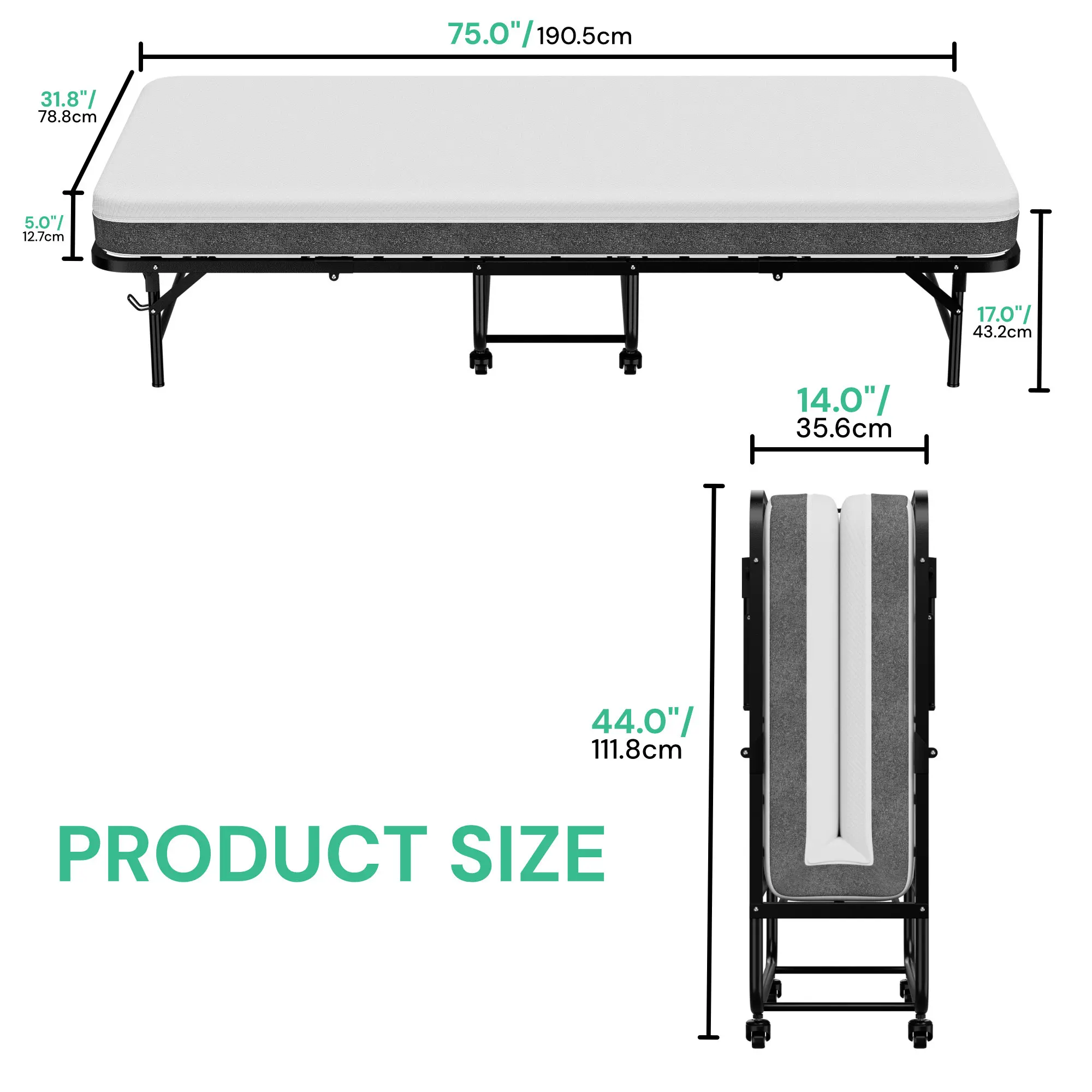 Cozy Castle Folding Bed with Memory Foam Mattress, Portable Rollaway Guest Beds on Wheels, 75"x31" Space-Saving Cot-Size Bed for Adults with Easy Assembly Metal Frame