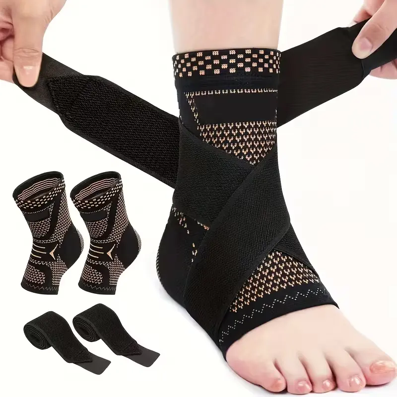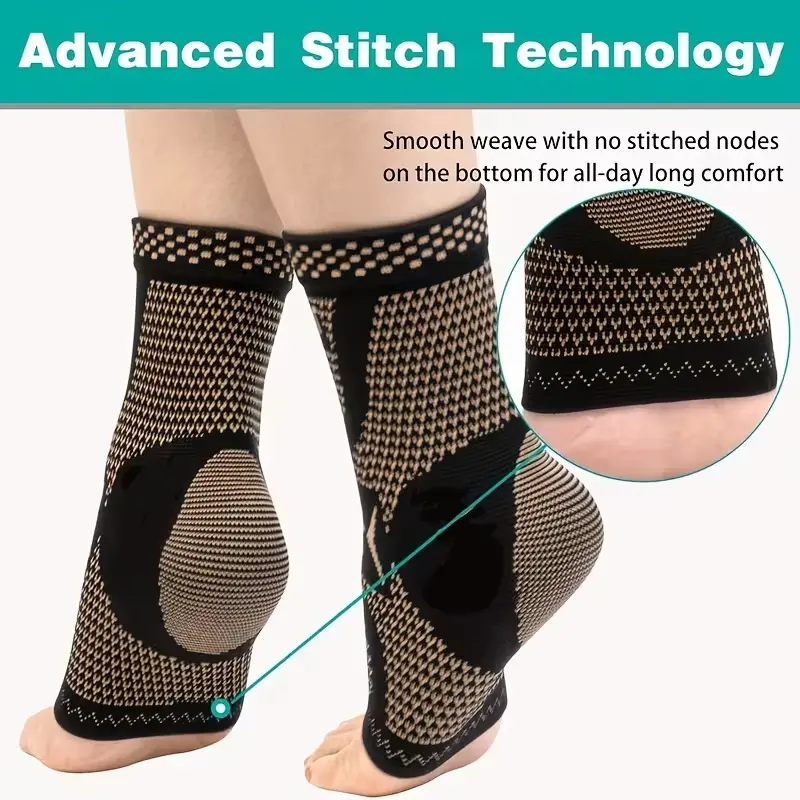 Set of 2 copper ankle compression sleeves; unisex support compression sleeves that are breathable and warm, ideal for hiking, basketball, volleyball, soccer, softball, golf, running, rock climbing, fitness, weightlifting, and other outdoor activities