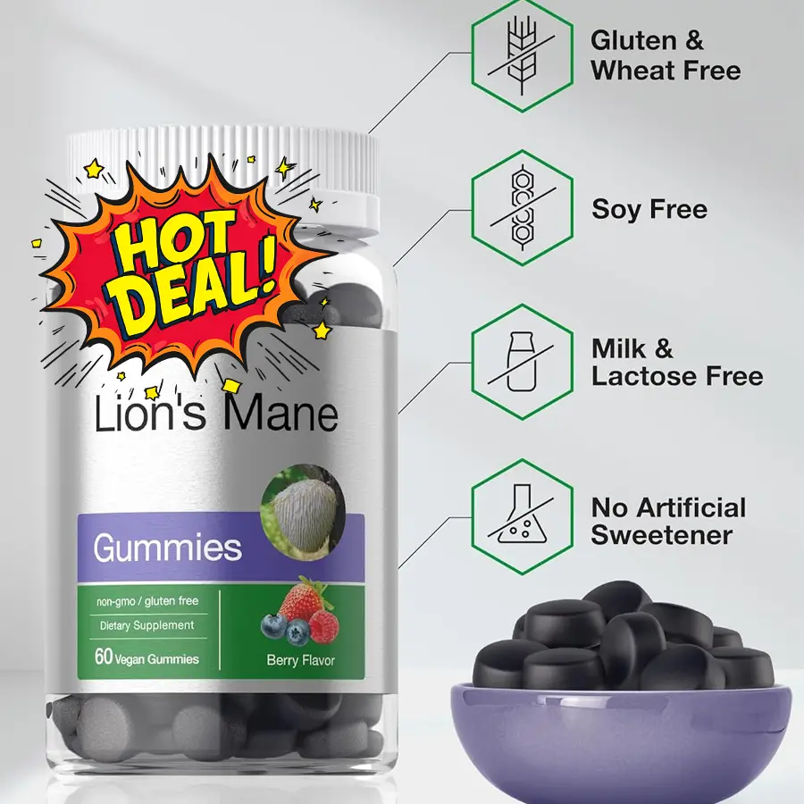 ✨ Lion's Mane Supplement | 60 Vegan Gummies for Adults | Non-GMO and Gluten Free ✨