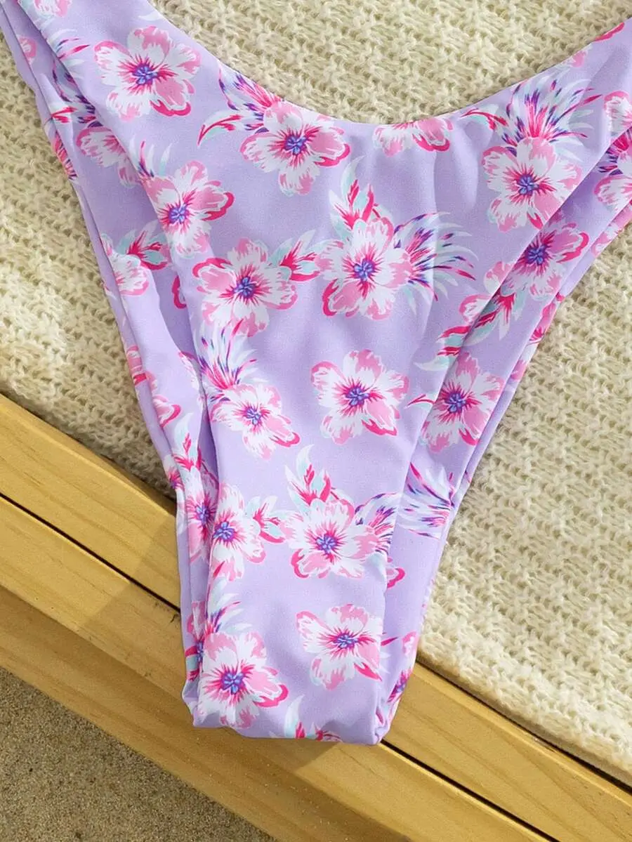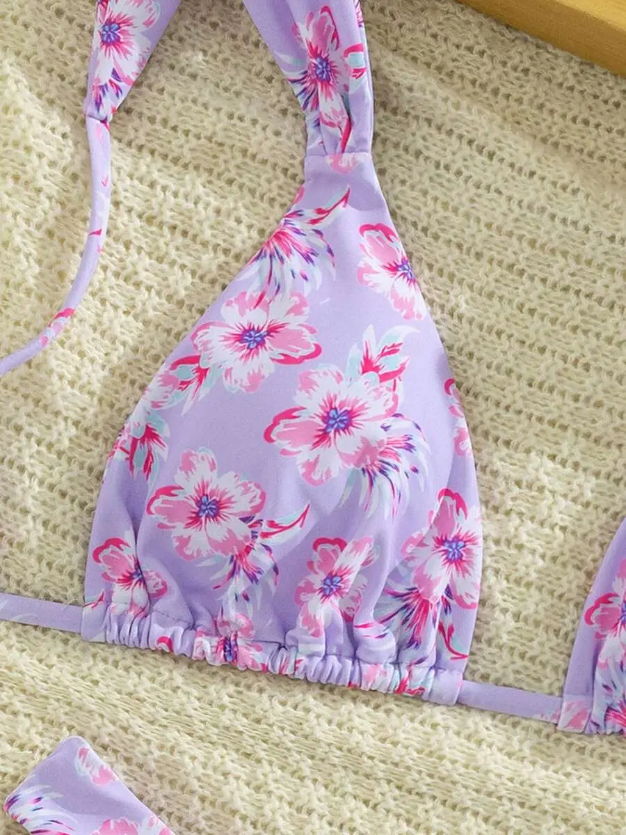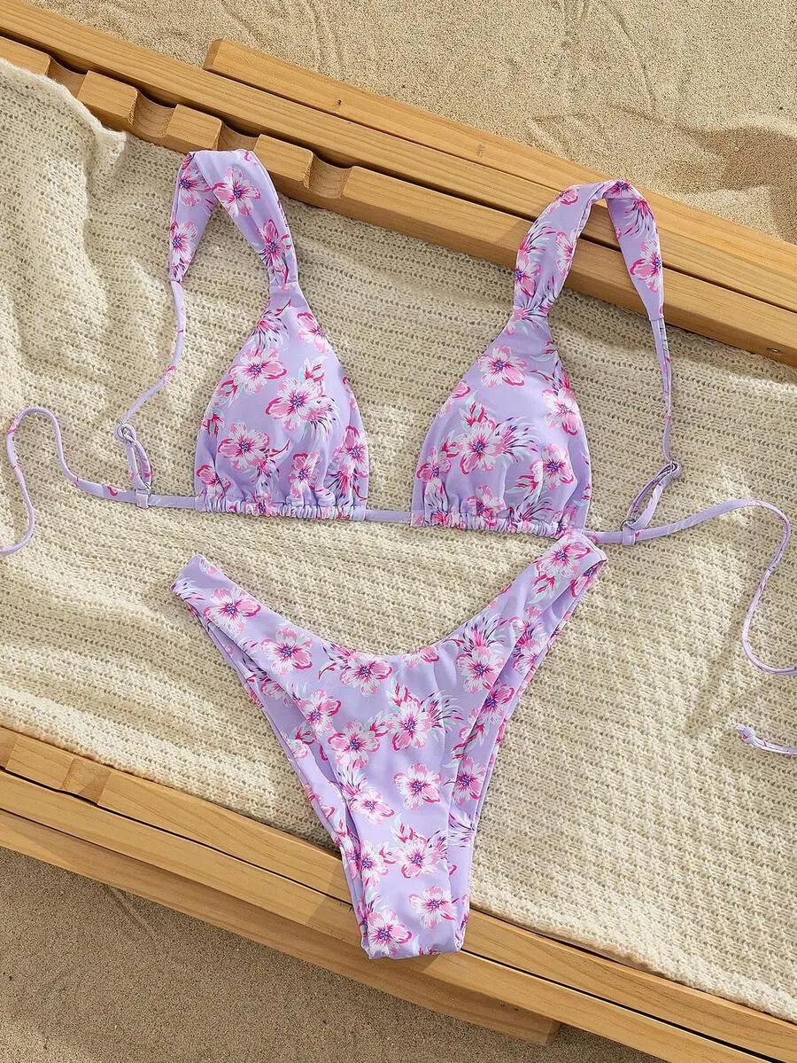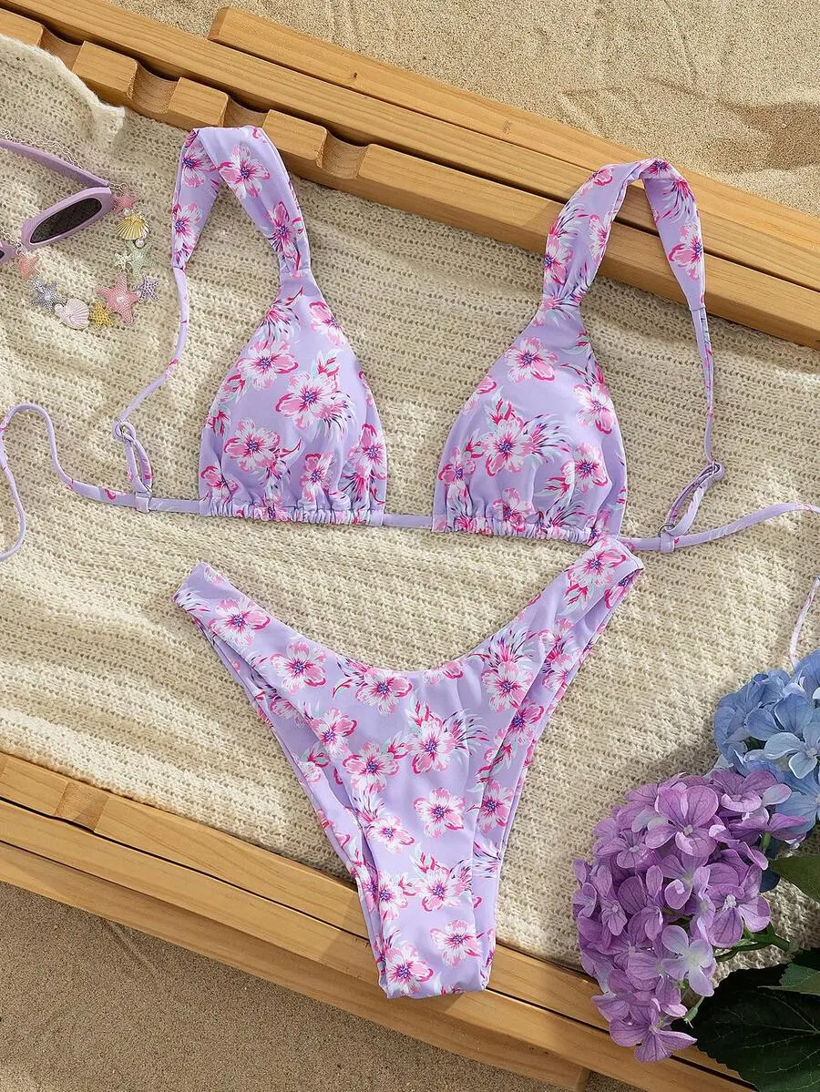 HIBOMARI 2pcs Floral Print Bikini Set Triangle Swimwear Sweet & Fashionable Swimwear Suitable For Beach And Swimming Vacation