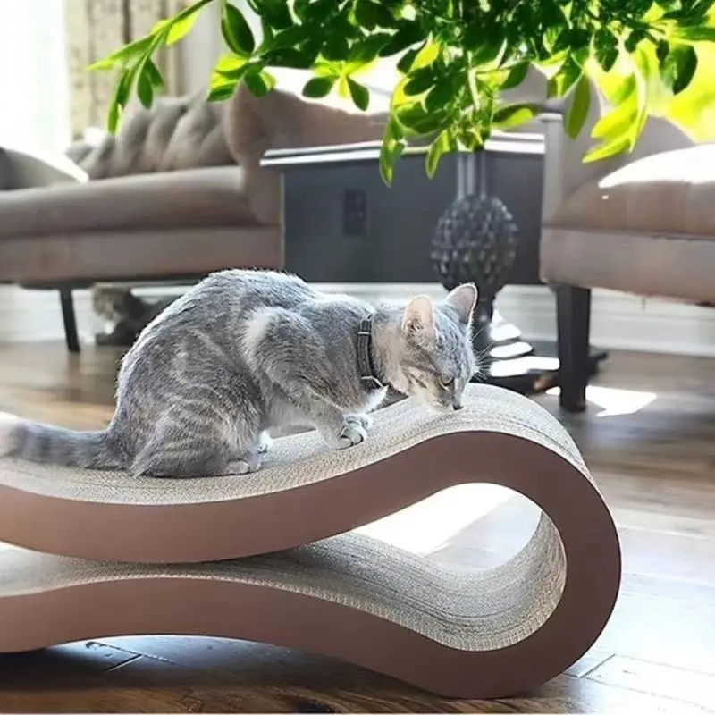 This ergonomic S-shaped cat scratcher is a 2-in-1 multi-functional cat furniture, designed to satisfy your cat's natural scratching instincts while providing a cozy, spacious lounge for napping and playing. Made with high-density corrugated cardboard, it offers long-lasting durability, protects your home furniture, and fits perfectly in any living space.