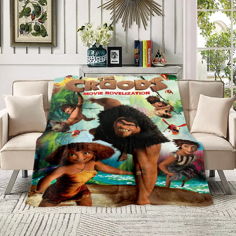 Soft Flannel Throw Blanket, DreamWorks The Croods Movie Poster Art Blanket, Cozy Grug & Eep Cartoon Blanket for Couch Bed, Aesthetic The Croods Movie Decorative Blanket Gift for Kids & Fans
