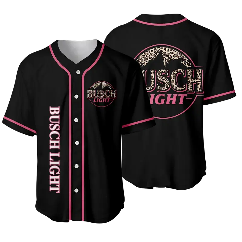 5. Leopard Print Bussch Light Baseball Jersey, Trendy Beer Drinker Apparel For Men Women, Summer Party Sports Top, Graphic Drinking Gift