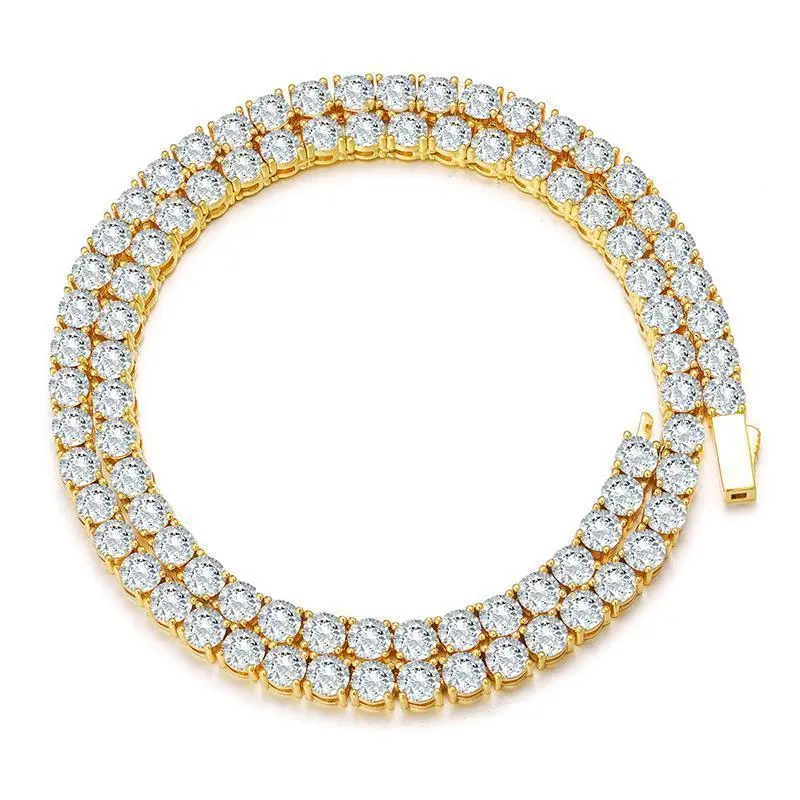 Hip Hop 925 Sterling Silver 3mm 4mm 5mm VVS Moissanite Diamond Necklace Moissanite Tennis Chain