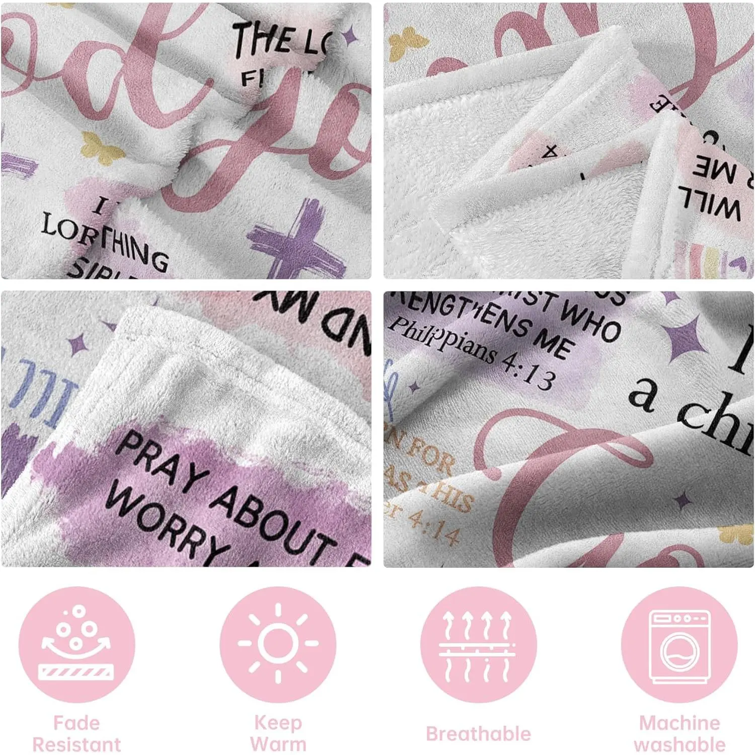 Christian Blanket with Flowers, Christian Gifts for Women, Birthday Gifts for Women, Spiritual Baptism Religious Gifts for Sister, Mom, Daughter, Teen Girls, Bestie, Soft Throw Blankets