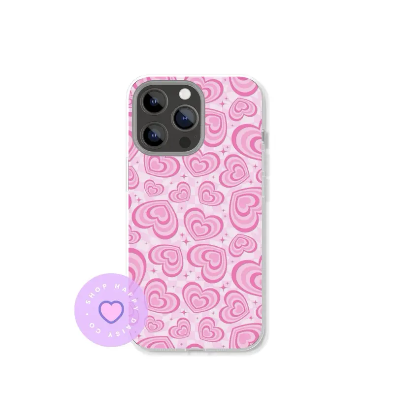 Pink Hearts Design Clear Phone Case Insert for iPhone Models - Premium Photo Paper Material, Case Insert Only