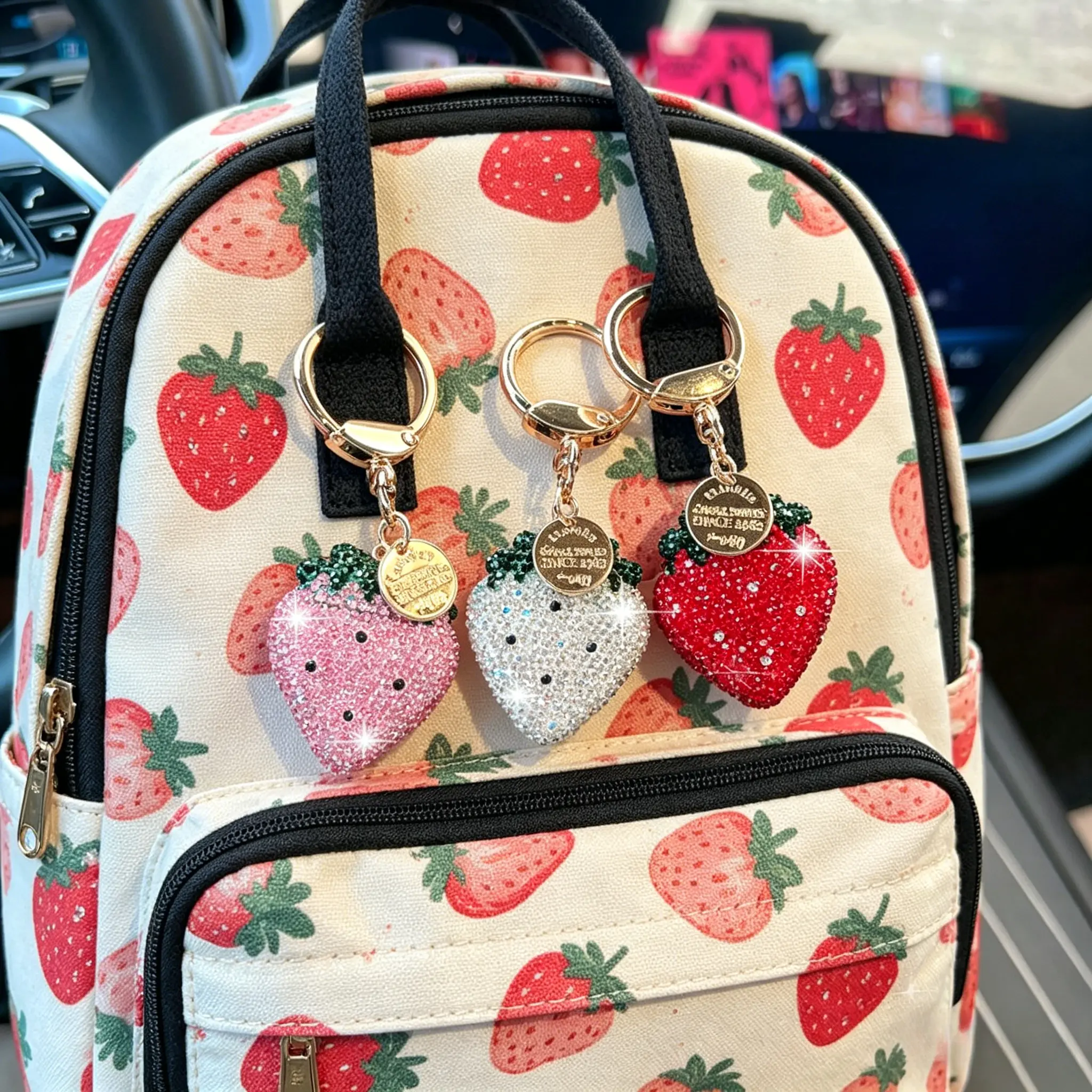 Sparkle Up Your Everyday with This Gorgeous Studded Strawberry Keychain!