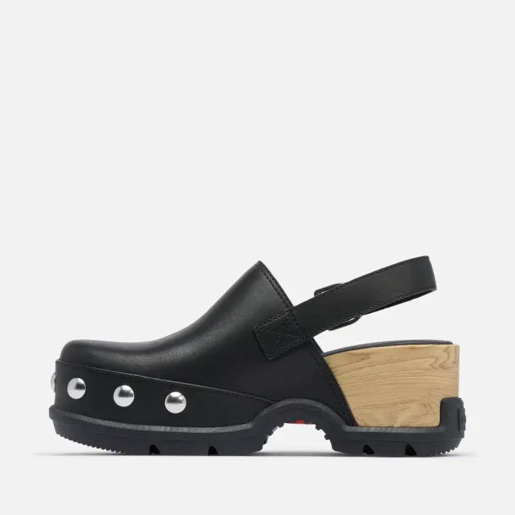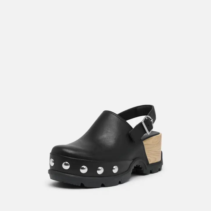 This clog takes a timeless silhouette and retools it with upscale volume, clean lines and bold hardware for a more high-fashion look.