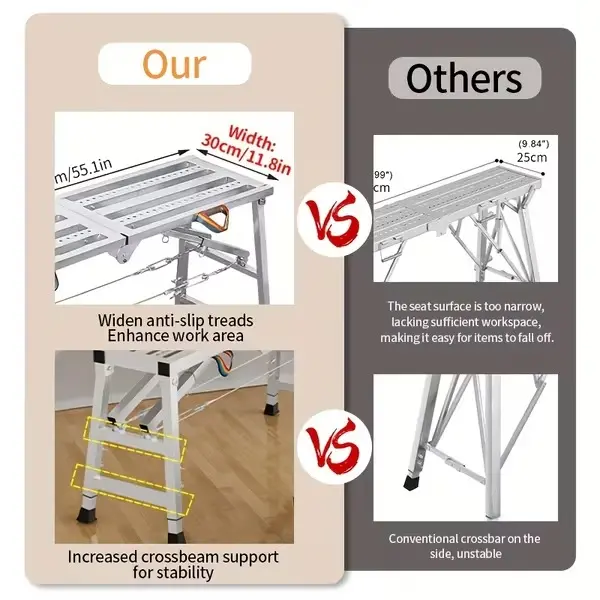The adjustable and foldable design allows for flexible use and easy storage, while the lightweight structure makes it convenient to carry wherever you need it. Whether used as a ladder, platform, or chair, it adapts to different tasks effortlessly.