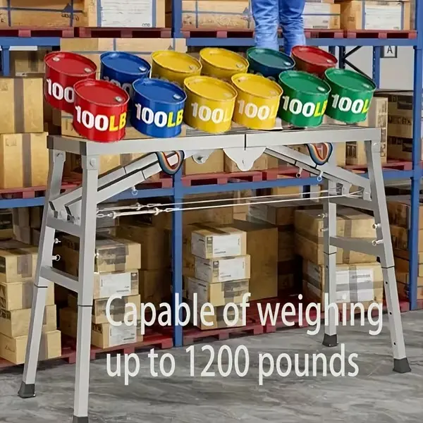 Handle tasks with ease using this Adjustable Folding Scaffolding Ladder Chair, designed for strength, stability, and portability. Built from durable steel, it supports up to 1300 lbs, providing reliable performance for both indoor and outdoor projects.