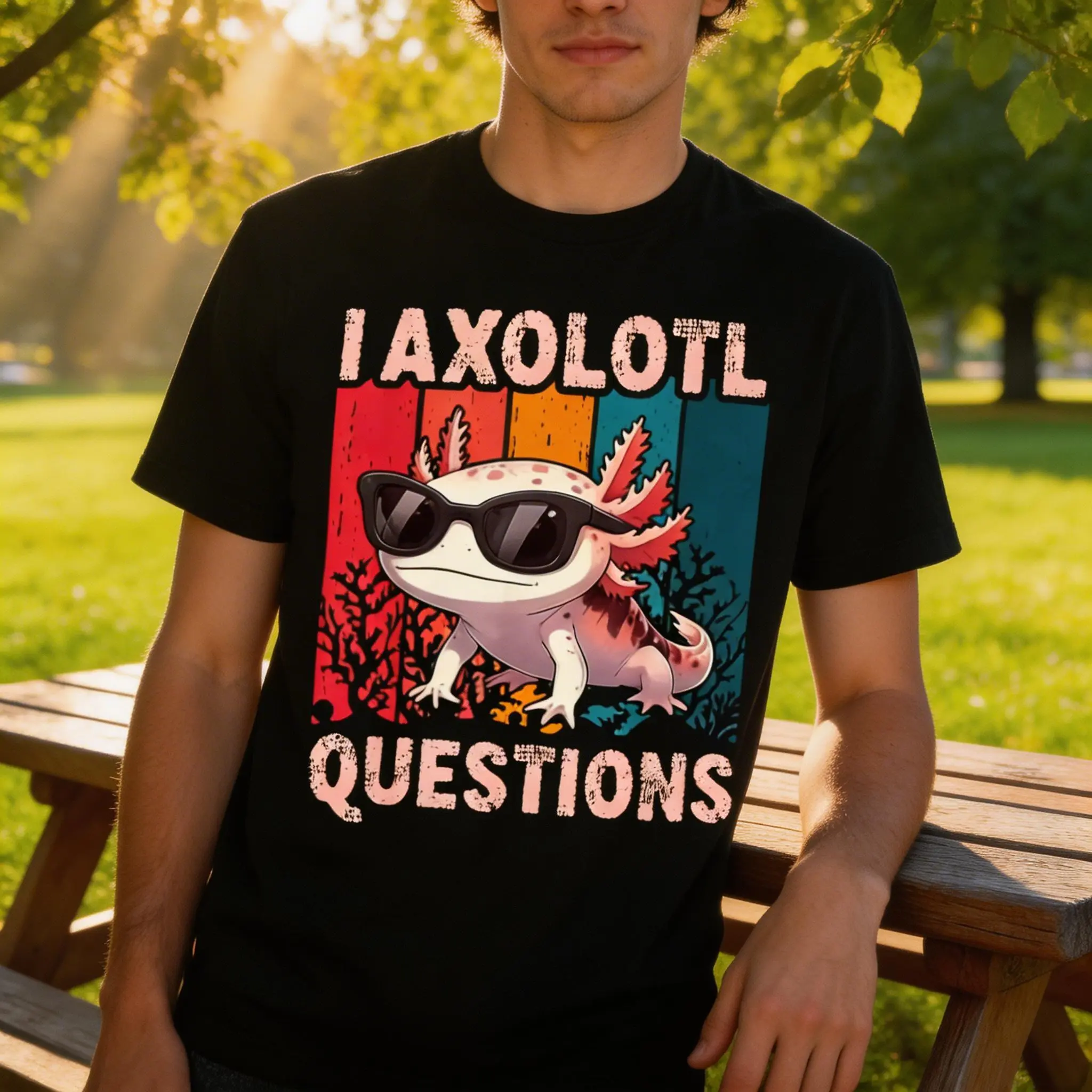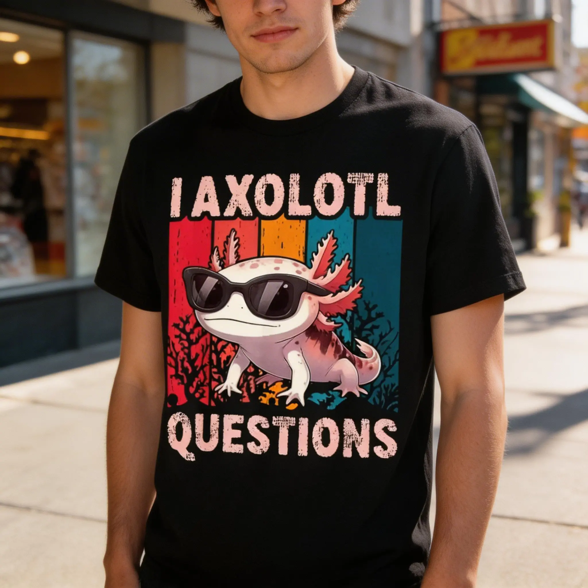I Axolotl Questions Retro Graphic T-Shirt for Boys & Girls – Fun Casual Short Sleeve Tee with Bold Colorful Design, Round Neck, Soft Stretch Fabric, Perfect for Summer Men's Crew Neck Short Sleeve T-Shirts Cotton Printed Round Neck T-Shirt