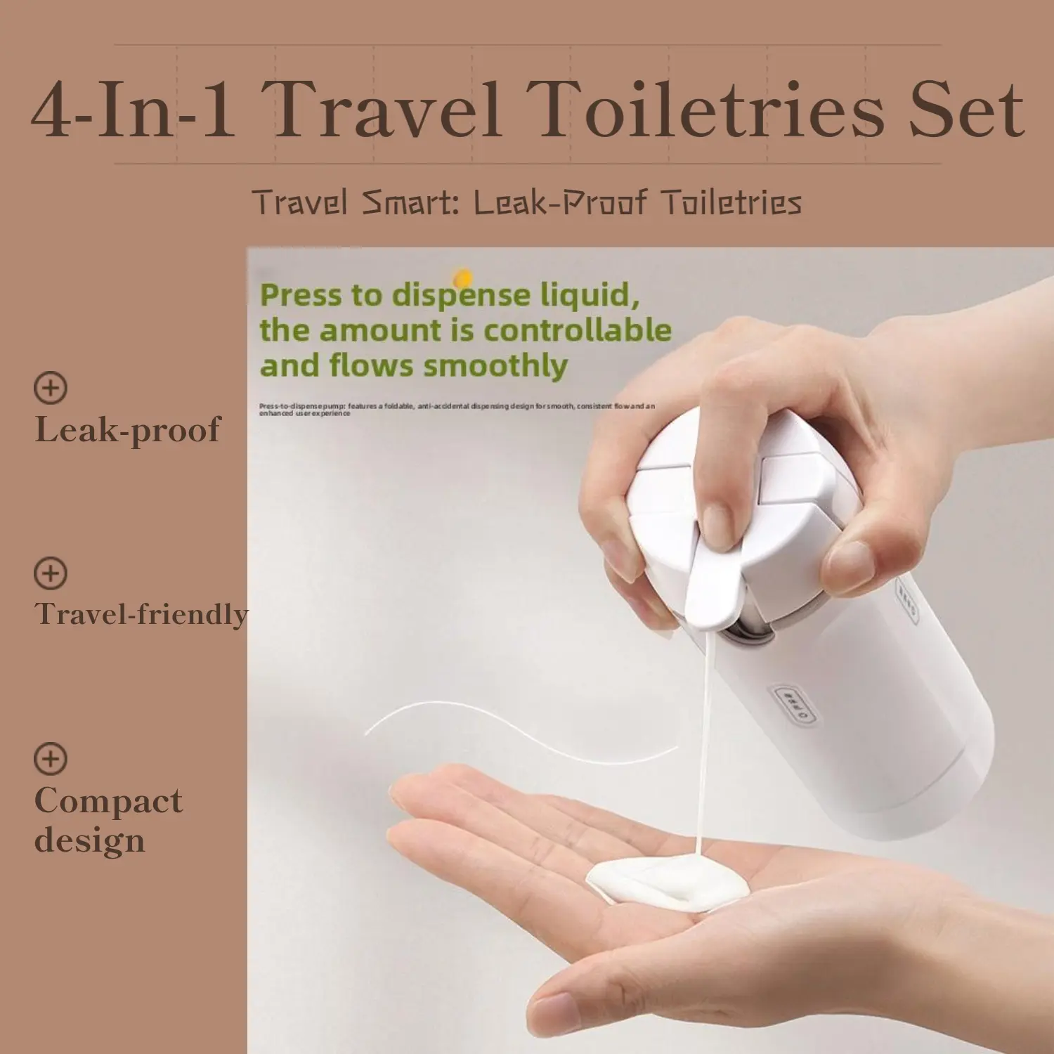 The set can hold four kinds of toiletries, making it versatile.