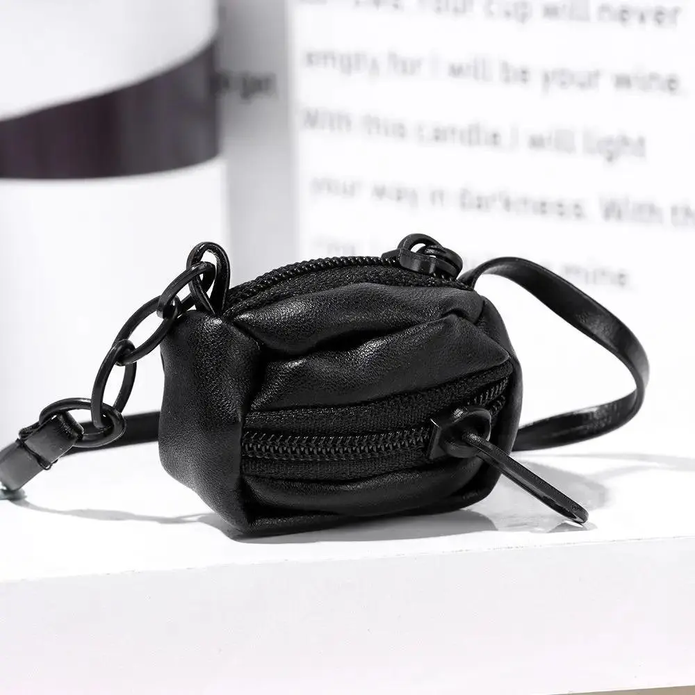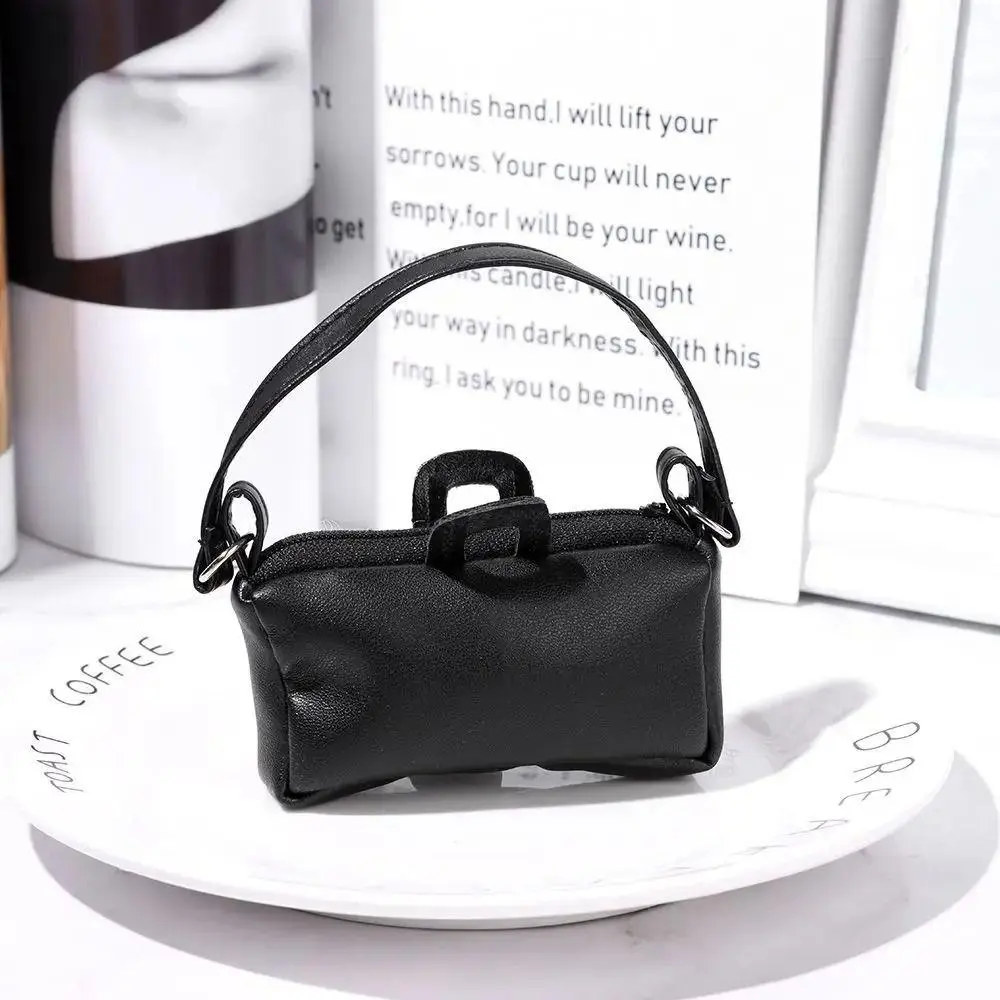 Miniature Doll PU Leather Bag DIY Mini Plush Doll Leather Handbag Purse Black 17cm Doll Bag Accessories Dolls Accessories