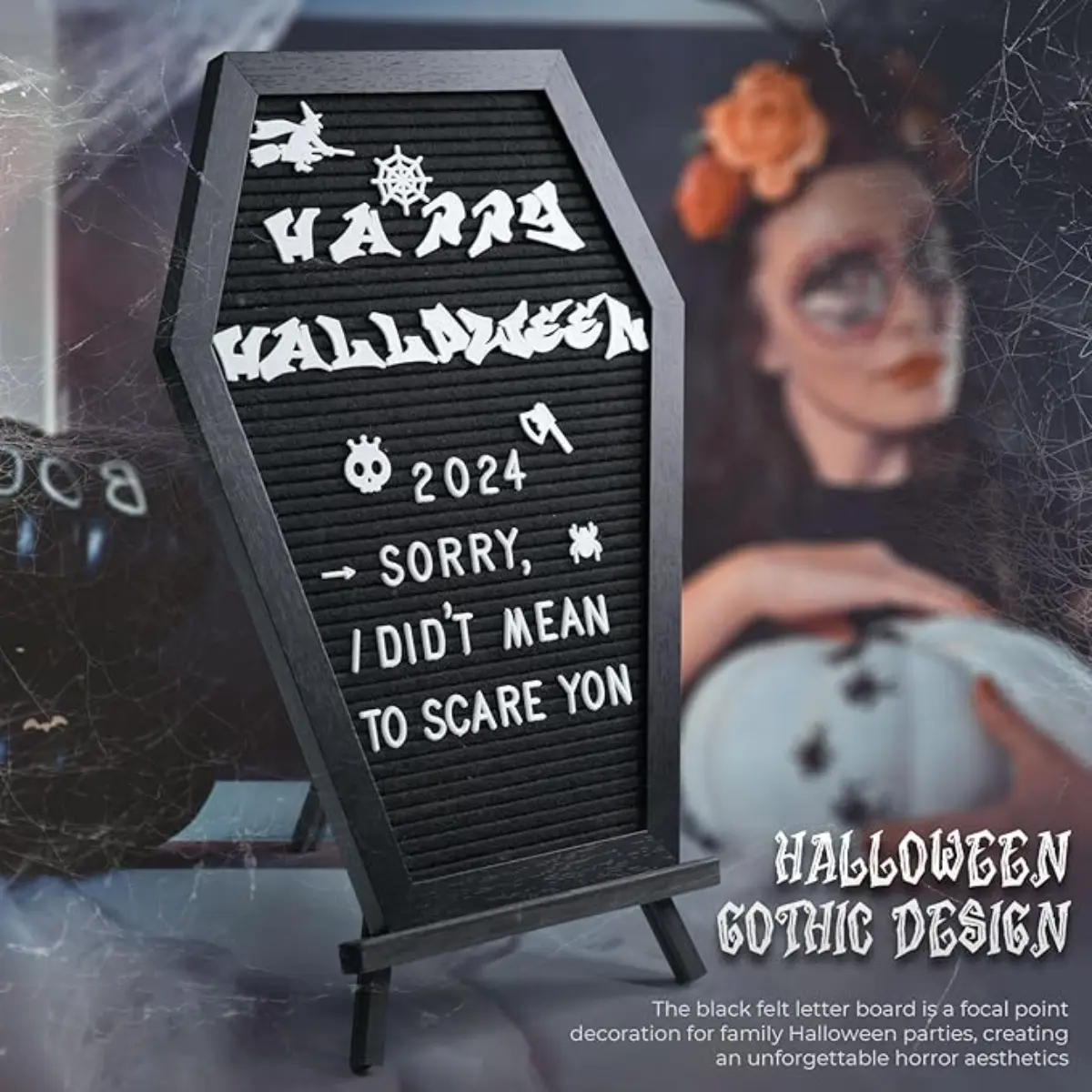 ·- HALLOWEEN GOTHIC DESIGN: Inspired by ancient legends, this Halloween coffin letter board is made of high quality felt board inner layer and wood frame outer layer, every inch reveals the spooky charm of Halloween, which makes people fascinated as soon as they enter the door.