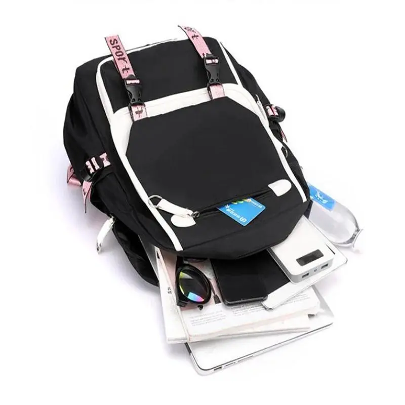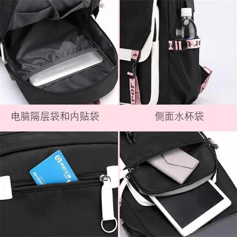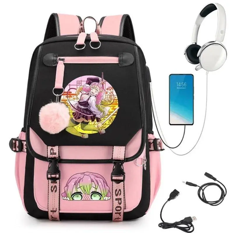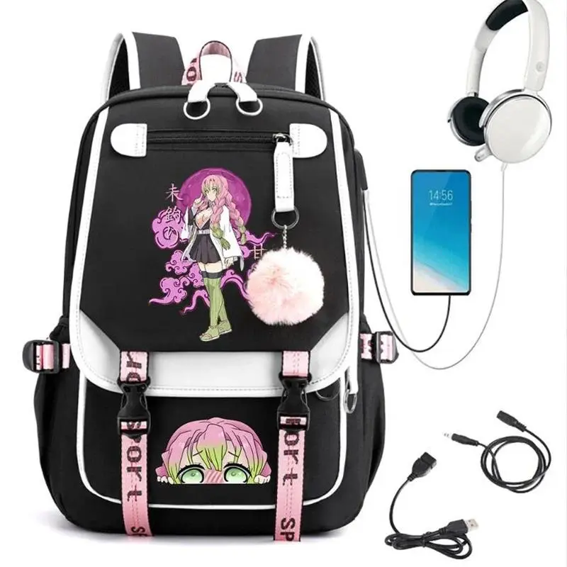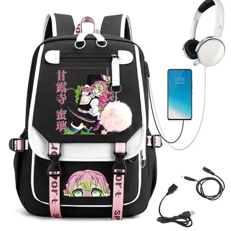 5. Demon Slayer Kanroji Mitsuri Backpacks Teenarges Schoolbag Anime USB Charge Laptop Travel Outdoor Bag Color Blocking Mochila