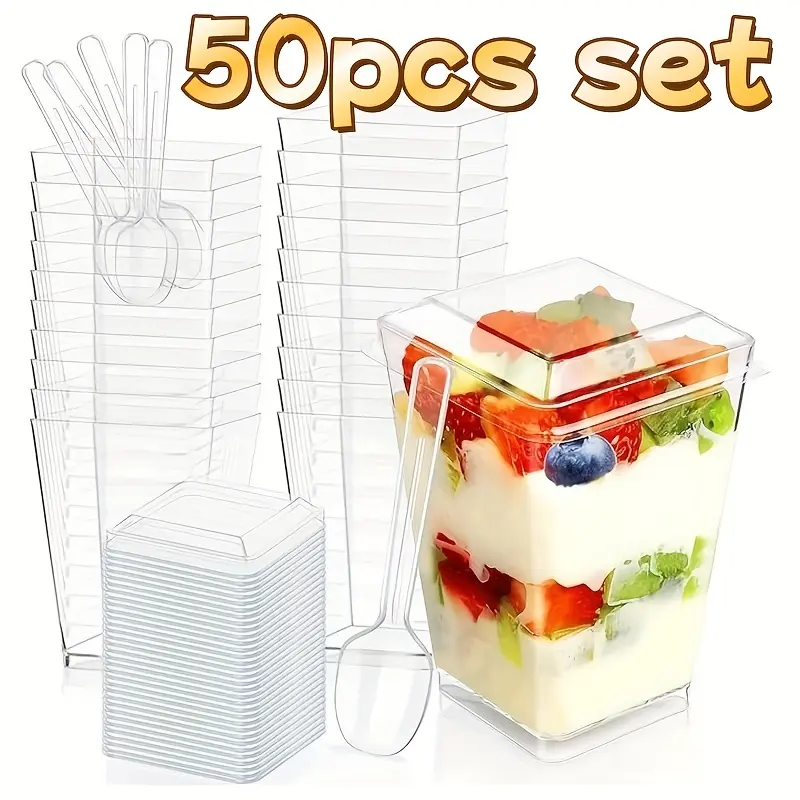 VALUE COMBO SET: Our package includes 50 clear dessert cups, 50 cup lids, and 50 spoons.