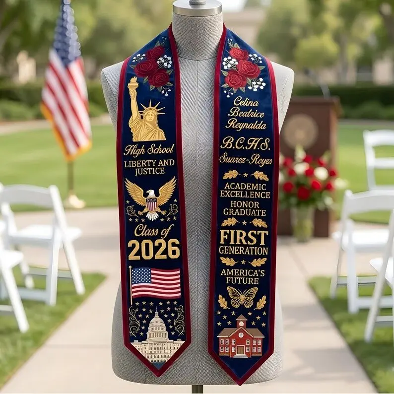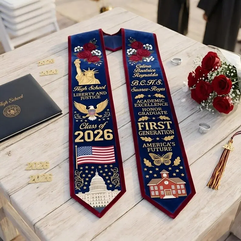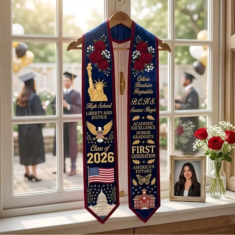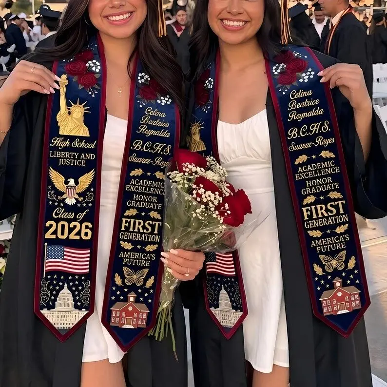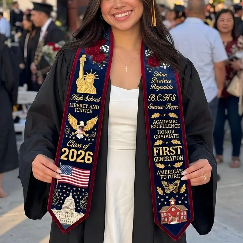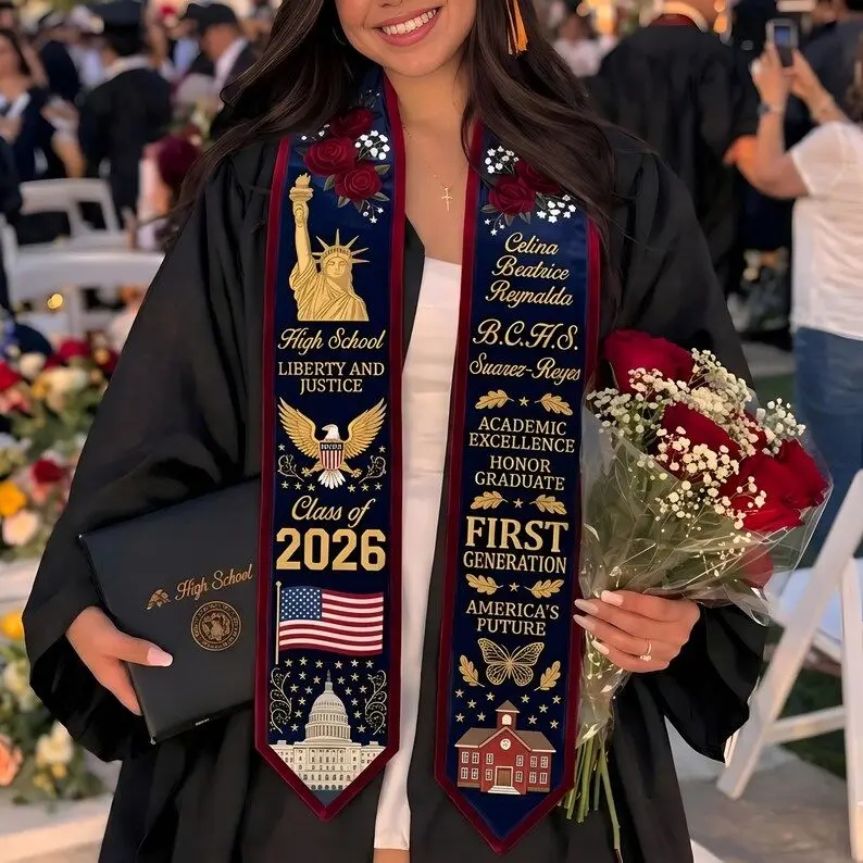 Custom Graduation Stole 2026, Personalized High School Class of 2026 Sash, American Flag Graduation Stole, First Generation Graduate Gift Graduation Stole