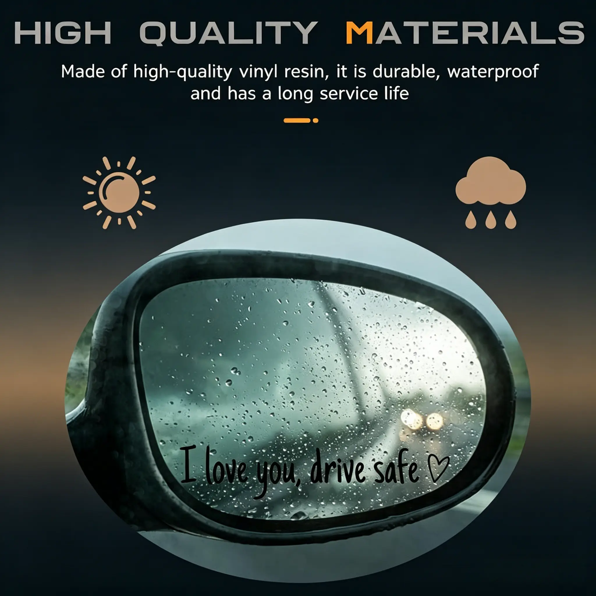 4x 'I Love You Drive Safe' Car Rearview Mirror Sticker, Vinyl Text Decal for Women, Romantic Car Mirror Accessories for Girlfriend Wife Boyfriend Husband , Universal Vehicle Decoration,Mother's Day gift (Always follow the instructions before use)