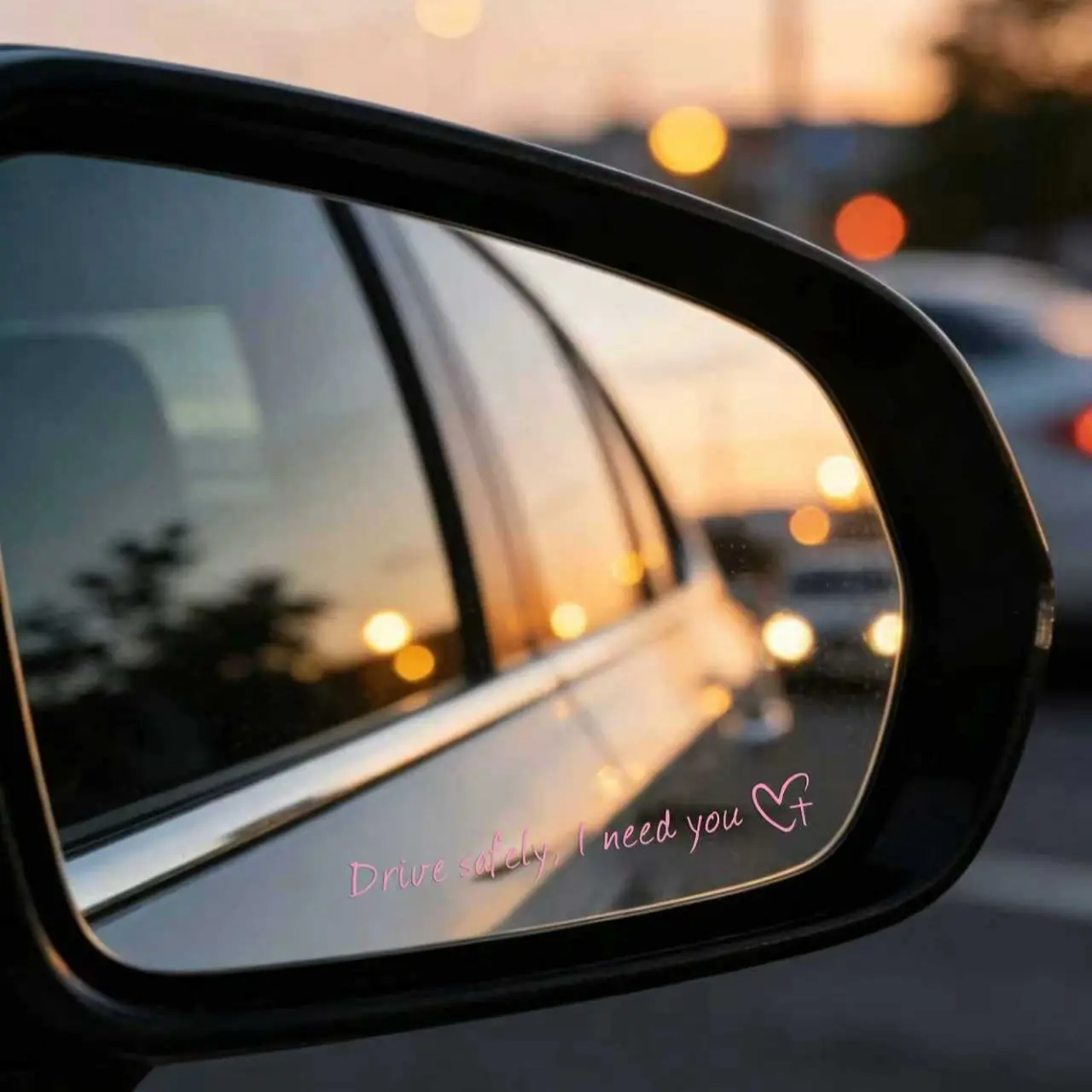4x 'Drive safely, I need you' Car Rearview Mirror Sticker, Vinyl Text Decal for Women, Romantic Car Mirror Accessories for Girlfriend Wife Boyfriend Husband , Universal Vehicle Decoration,Mother's Day gift (Always follow the instructions before use)