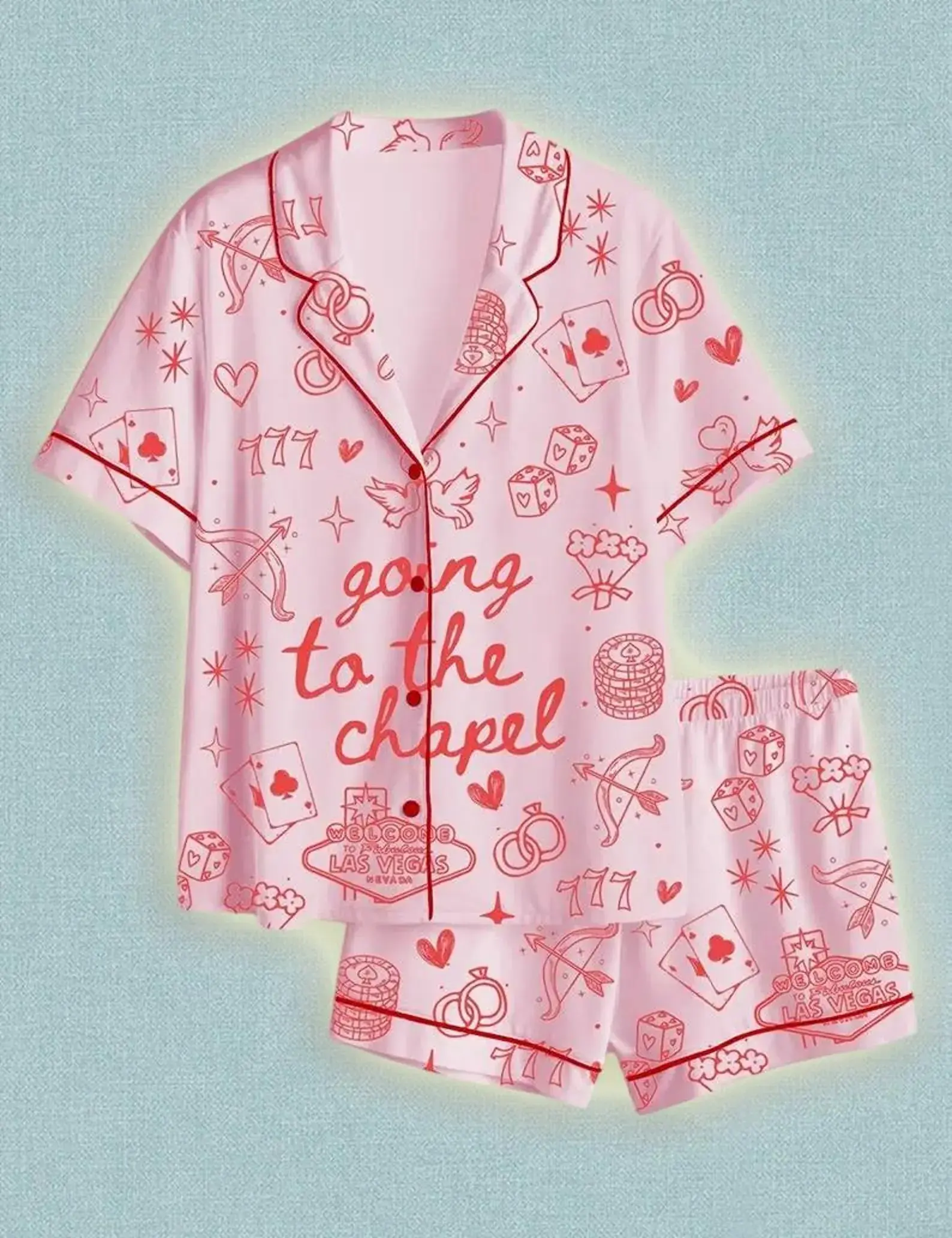 Las Vegas Chapel Coquette Bachelorette Satin Short Pajama Set, Bride Just Engaged Short Pajamas, Matching Family Sleepwear Set, Pajama Set For Men Women Kids