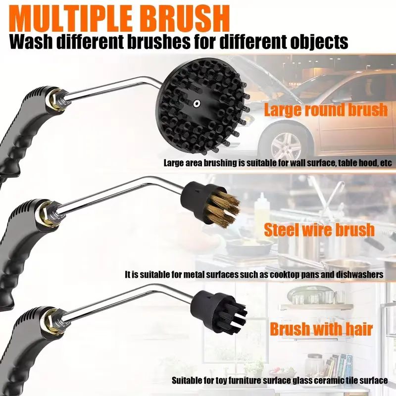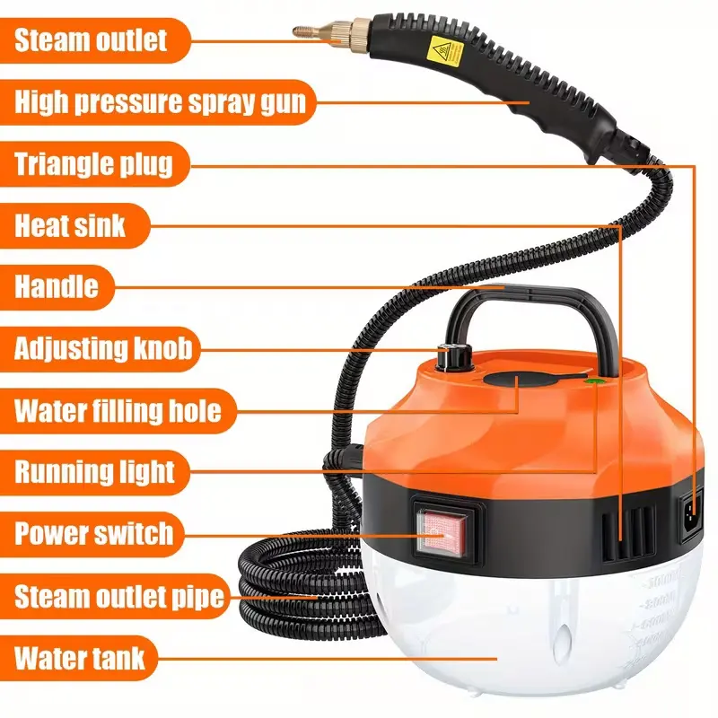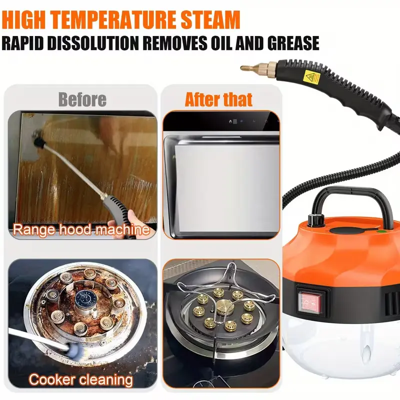 This multi-purpose steamer is perfect for home, kitchen, and car use. It features a handheld design for easy maneuverability. The natural steam cleaner effectively tackles various surfaces, ensuring a thorough clean. Comes with 9pcs replacement parts for longevity and convenience. Ideal for maintaining cleanliness in different environments.