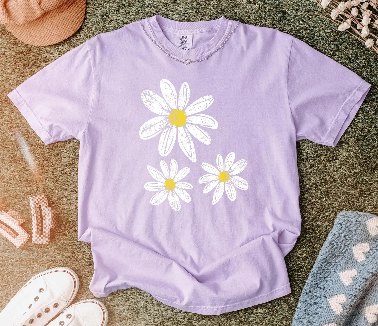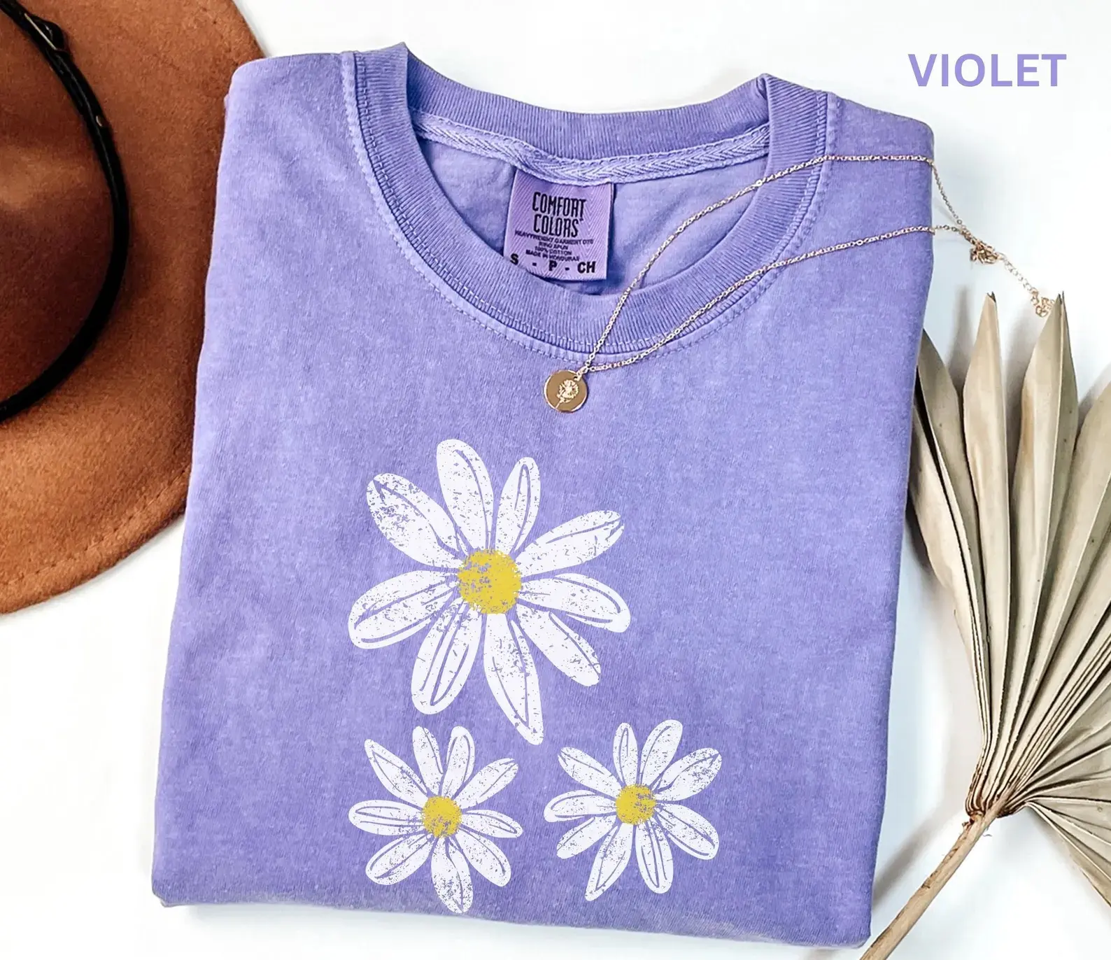 5. Comfort Colors Daisy Shirt, Boho Floral Graphic Tee, Retro Aesthetic Flower Shirt, Soft Washed Vintage T-Shirt, Spring Shirt for Women