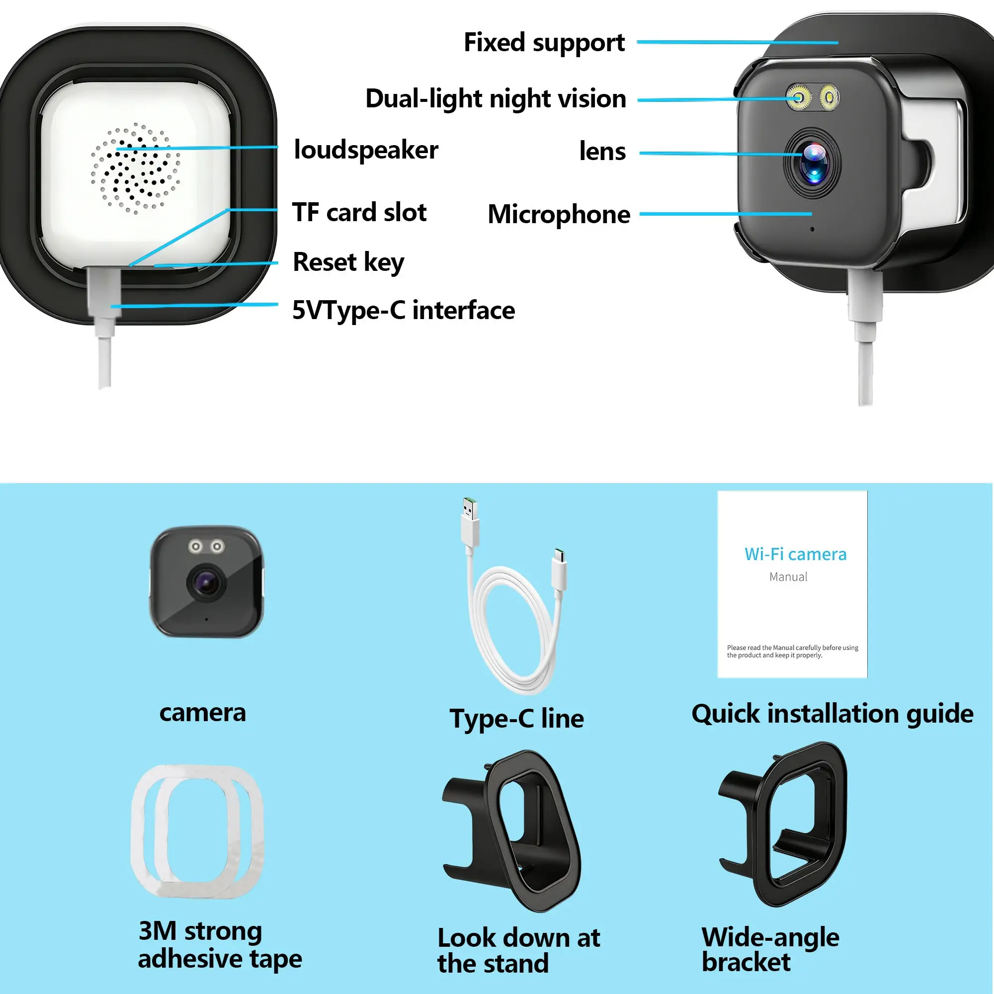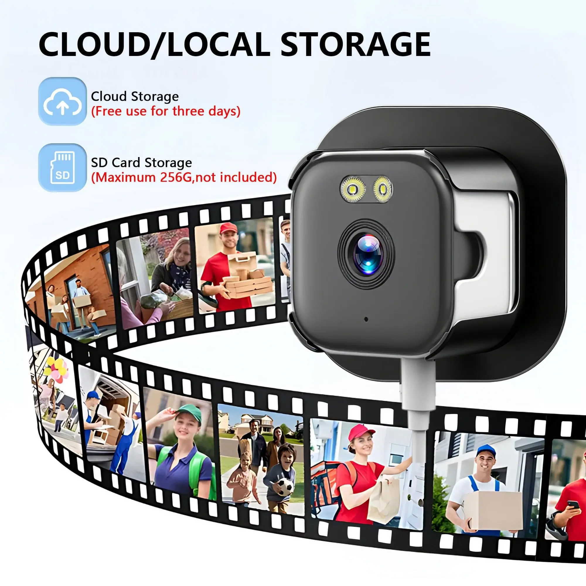 WiFi Window Camera Dual Stand, Adjustable Angle, No Screws, Self-Adhesive, Night Vision, Home Security Monitoring, Elderly, Kids, Pets