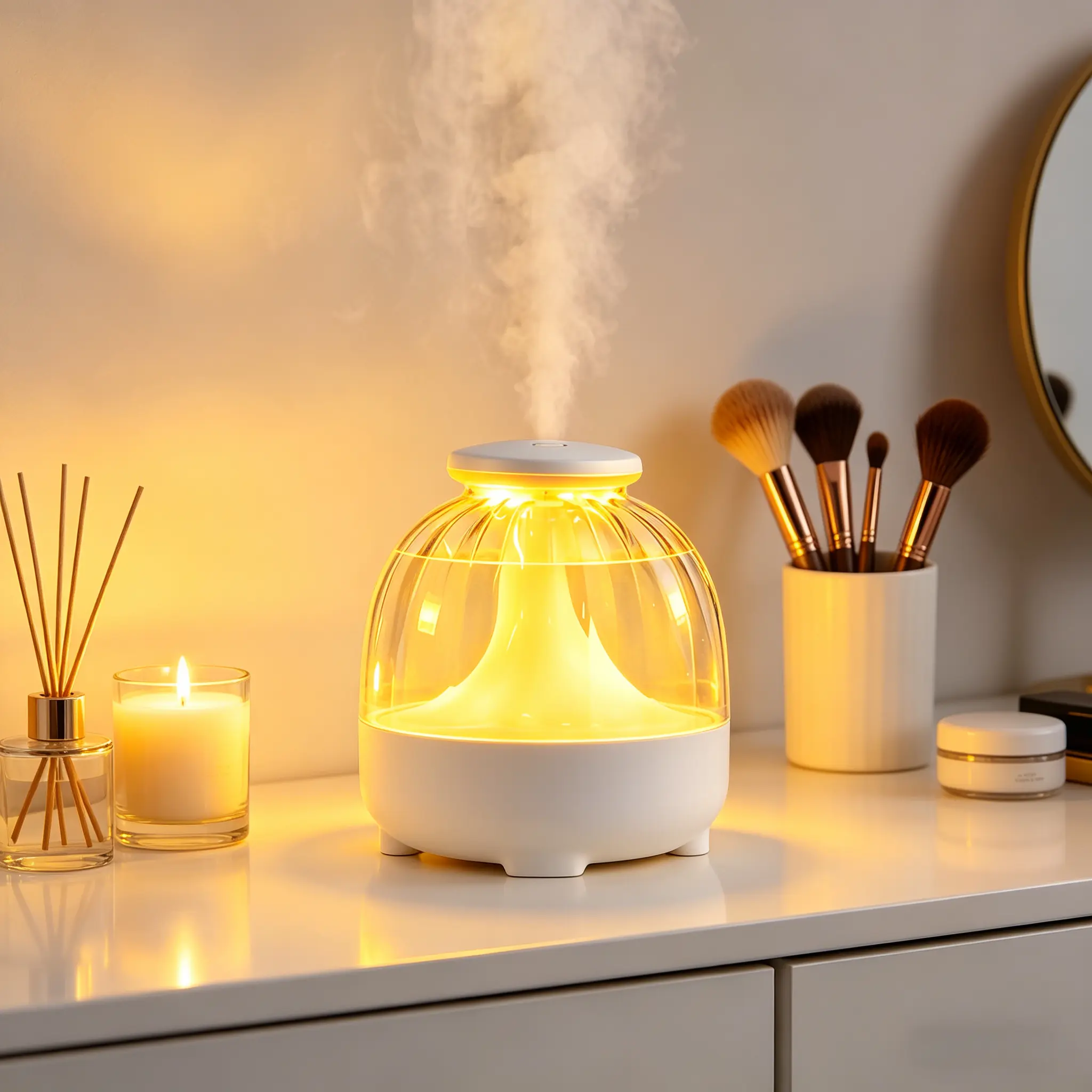 ·【Customizable Lighting and Portable Design】Featuring a sleek, compact build, this Aromatherapy Diffuser offers 7vibrant flame modes and aurora lighting to transform any space into a visual retreat. Its easy-to-move design makes it a perfect travel companion for desks, bedside tables, or hotel stays, adapting to scenes like the office, living room, bedroom, yoga studio, or as a Gift. Target users include professionals, yoga practitioners, and gift-givers who value style and convenience, using it to achieve a tranquil atmosphere for work, meditation, or social gatherings