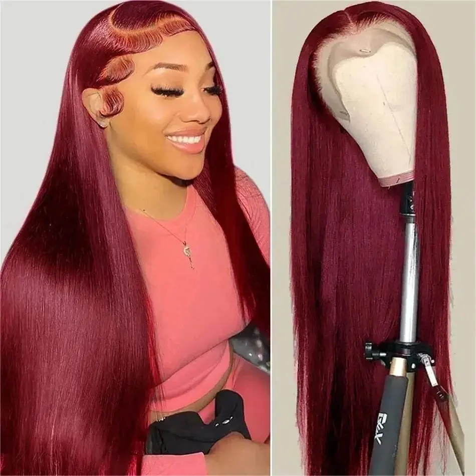 Hot Star 99J Burgundy Wig Human Hair 13x6 Straight Lace Front Wigs Human Hair Pre Plucked HD Transparent Lace Frontal Wigs for Black Women 180% Density Red Colored Body Wave Wig