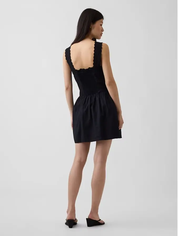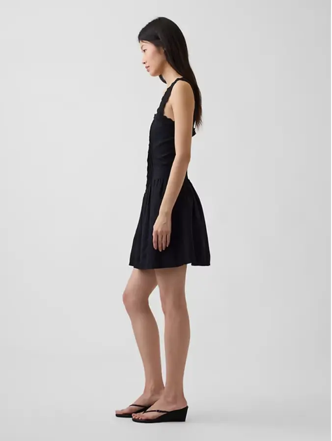 ·Soft linen-blend or indigo cotton voile mini dress.