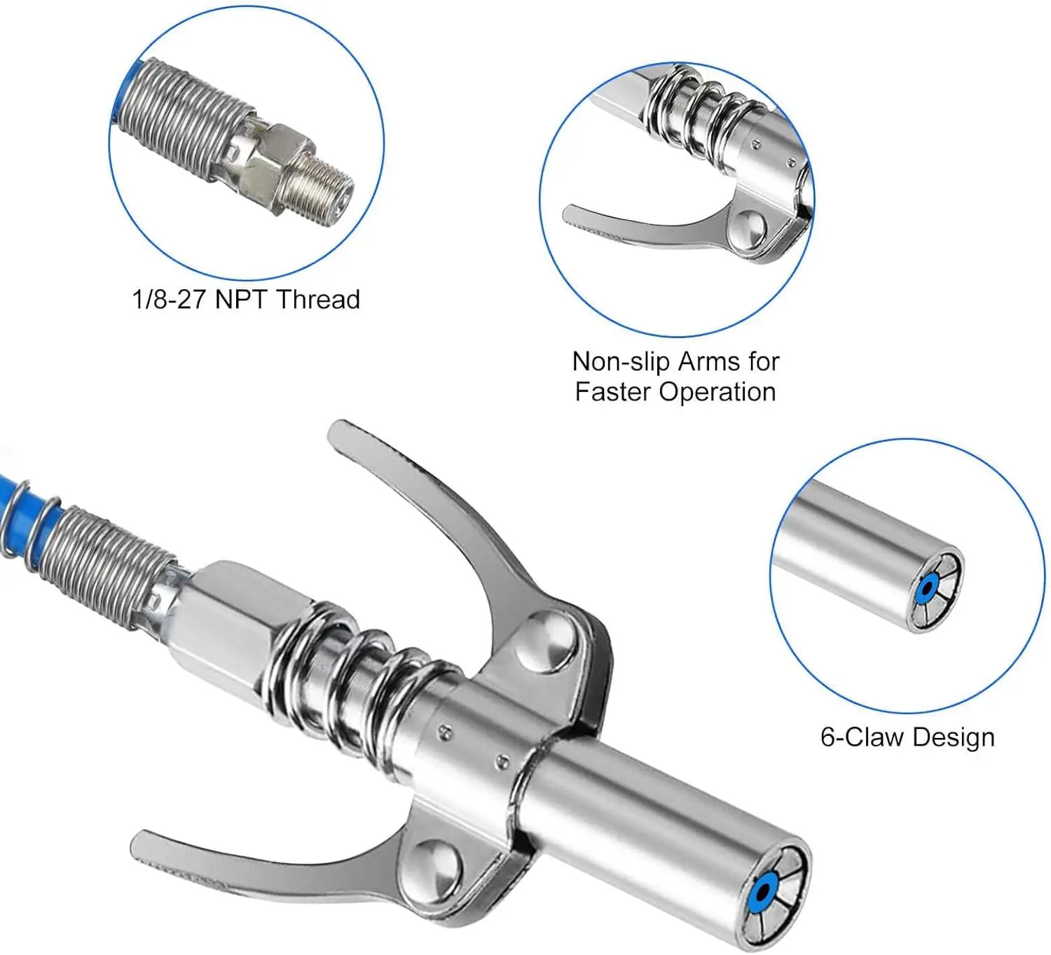 ·High Pressure & Leak-Proof Design: Withstands up to 12000 PSI, sealed tightly to prevent oil leakage, stable and safe for pneumatic and manual grease guns.
