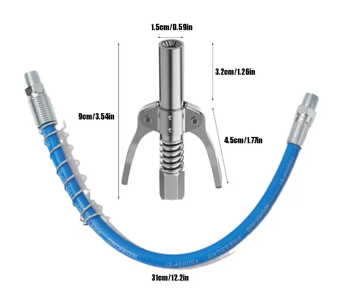 Grease Gun Coupler & Hose Kit, High Pressure Explosion-Proof Fitting, Quick Release Nozzle, Universal for Pneumatic & Manual Grease Guns