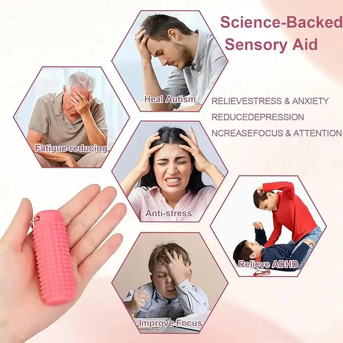 Unique Spiky Grippie Design: Its unique roller shape and small plastic spikes provide a satisfying tactile experience to calm you down during stressful moments. Temporary marks fade quickly, allowing for comfortable use.