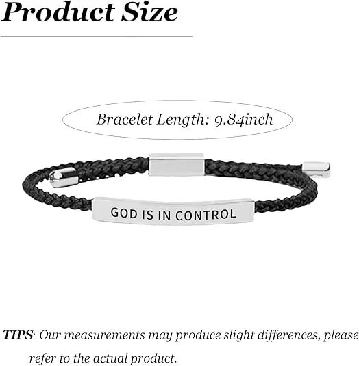 Adjustable Size: The "God Is In Control" Tube Bracelet measures approximately 9.84 inches and can be adjusted from 3.34 to 9.84 inches, ensuring it fits comfortably on any wrist